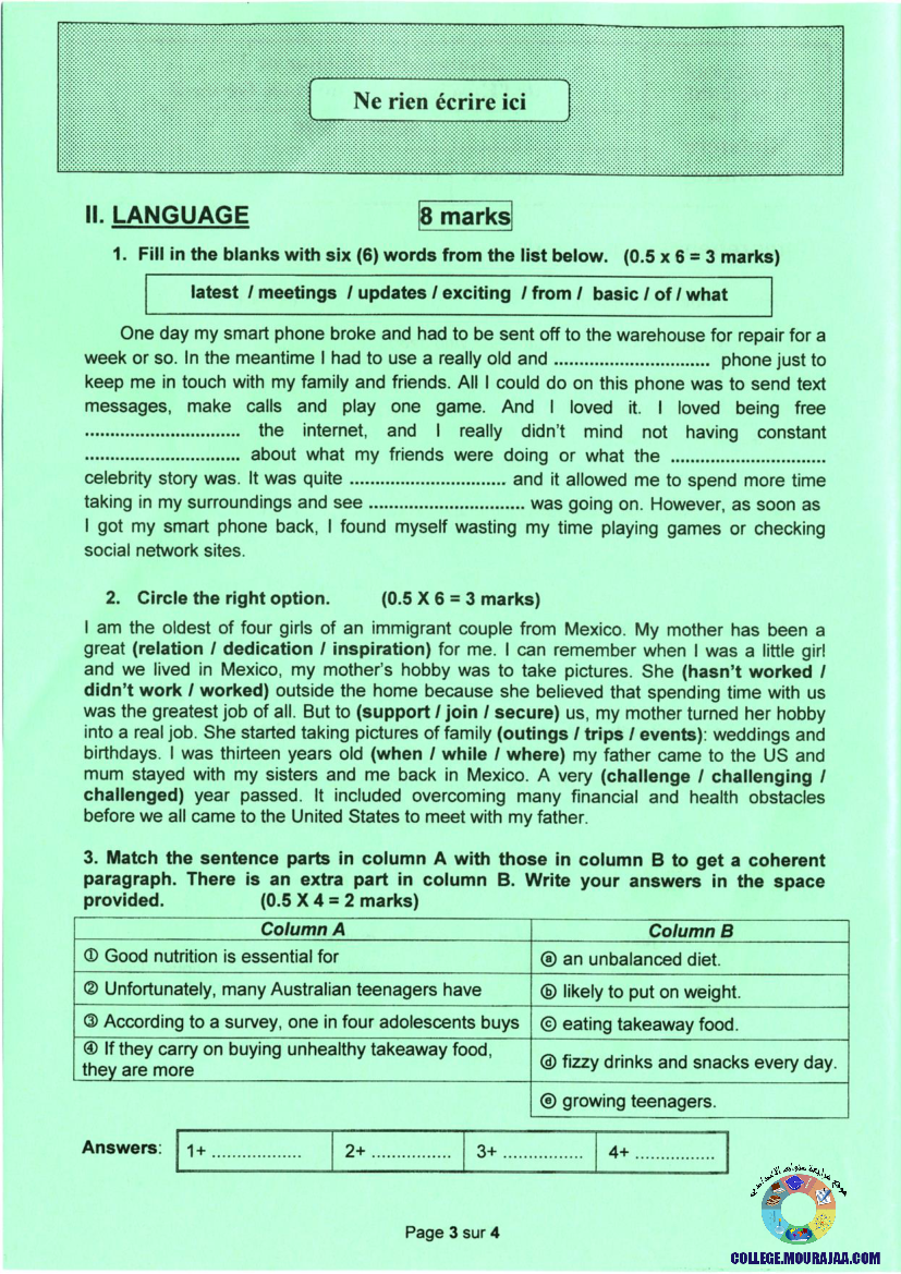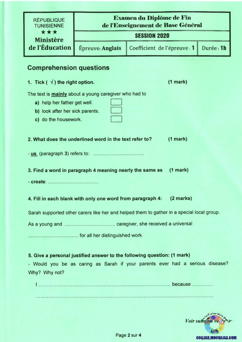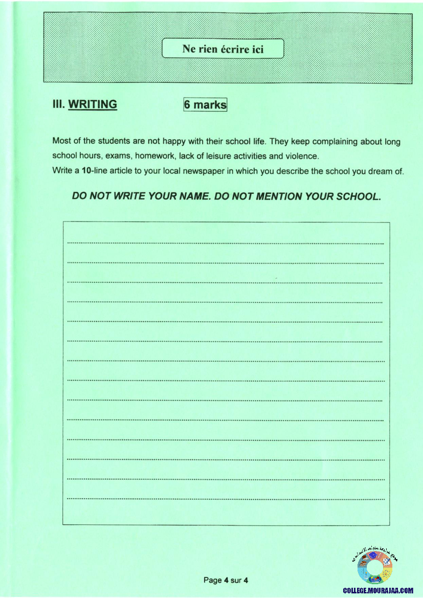 امتحان الانقليزية مناظرة النوفيام سنة 2020