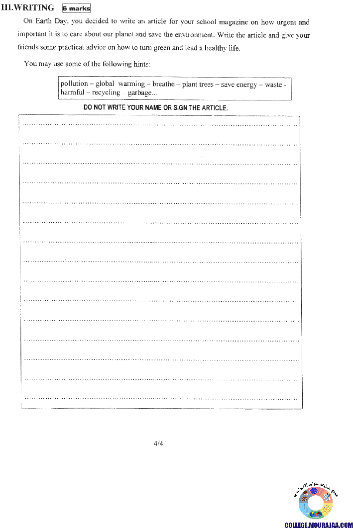 تحميل امتحان الانقليزية مناظرة النوفيام سنة 2010 في صيغة ملف او صور