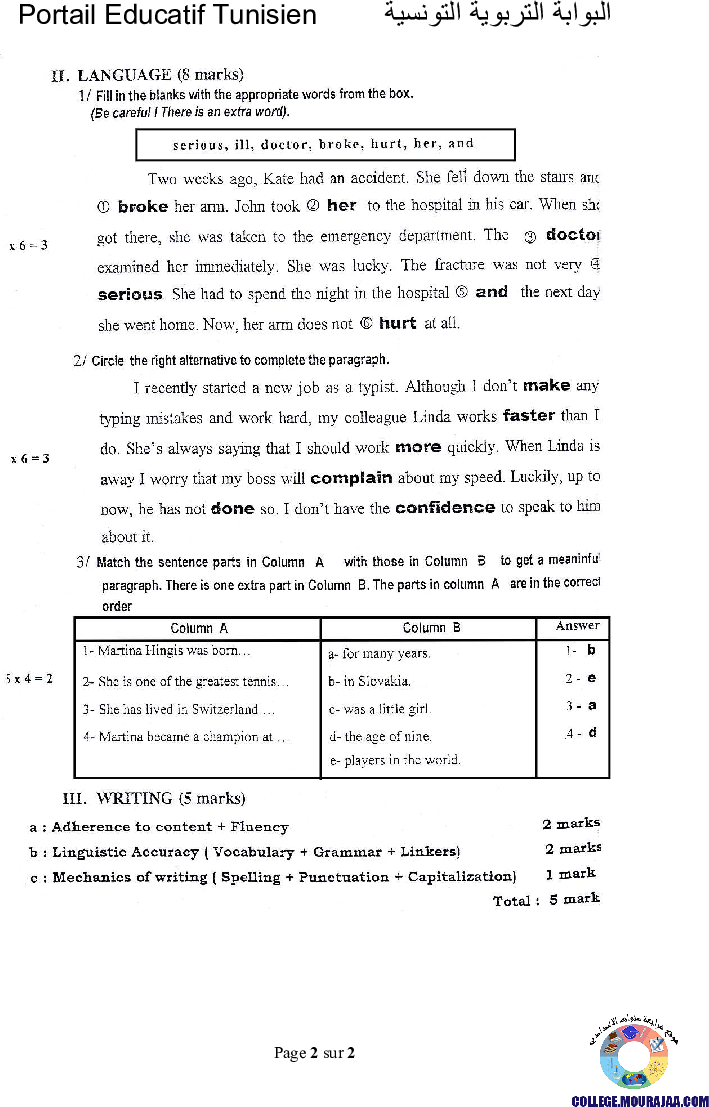 اصلاح مناظرة شهادة ختم التعليم الاساسي في مادة الانقليزية لسنة 2004