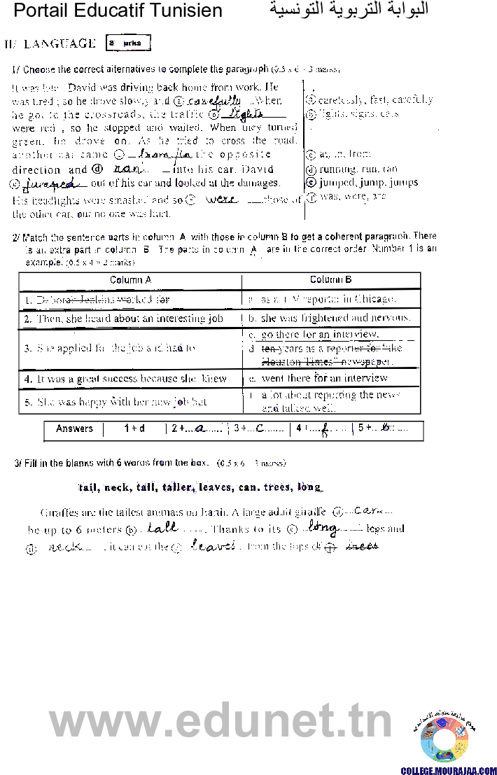 ِCorrection epreuve anglais concour neuvieme annee 2005