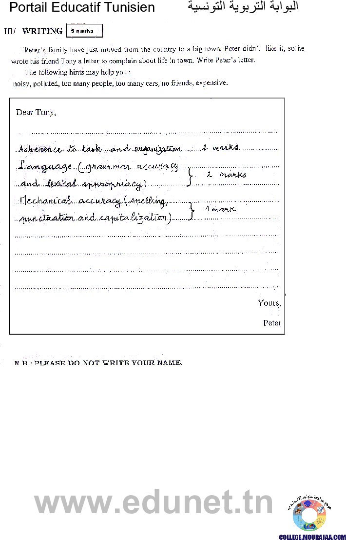 اصلاح مناظرة شهادة ختم التعليم الاساسي في مادة الانقليزية لسنة 2005