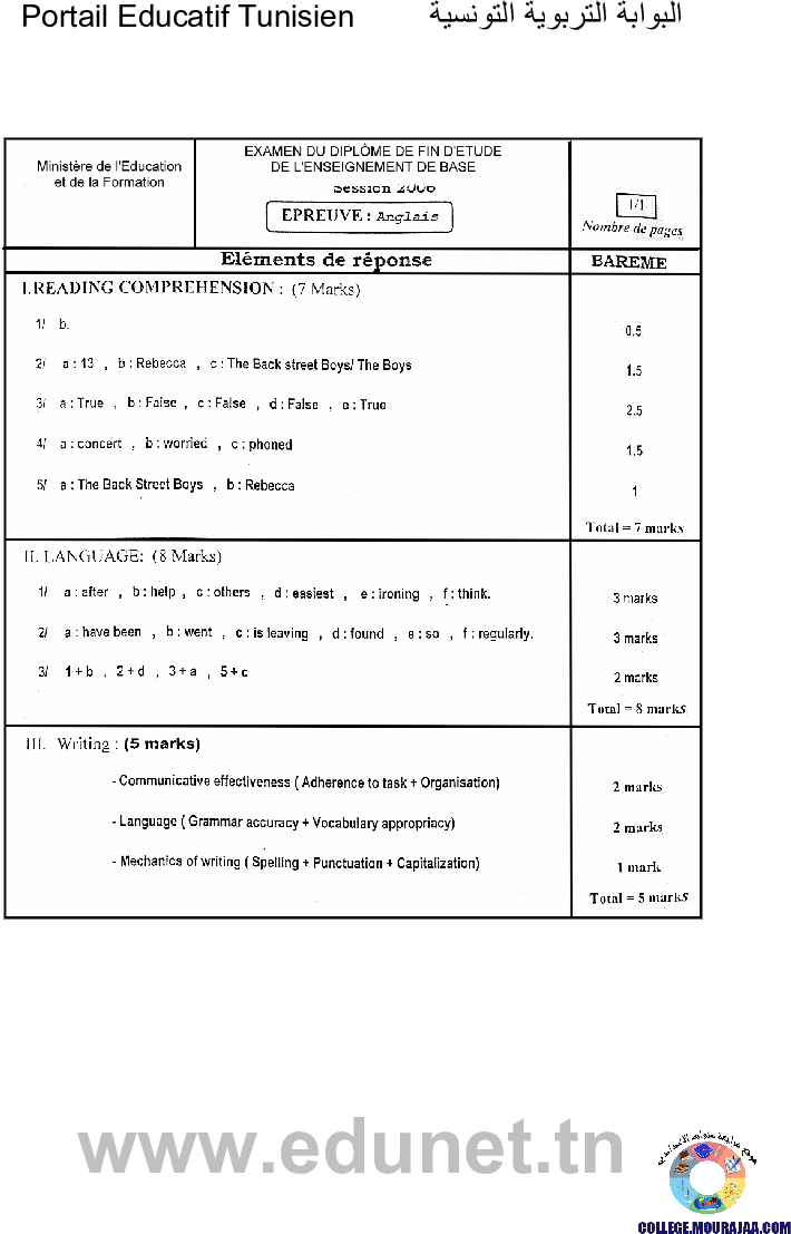 اصلاح مناظرة شهادة ختم التعليم الاساسي في مادة الانقليزية لسنة 2006