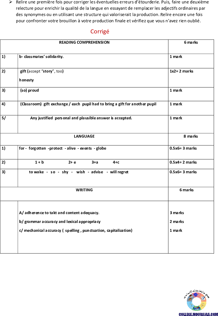 ِCorrection epreuve anglais concour neuvieme annee 2018