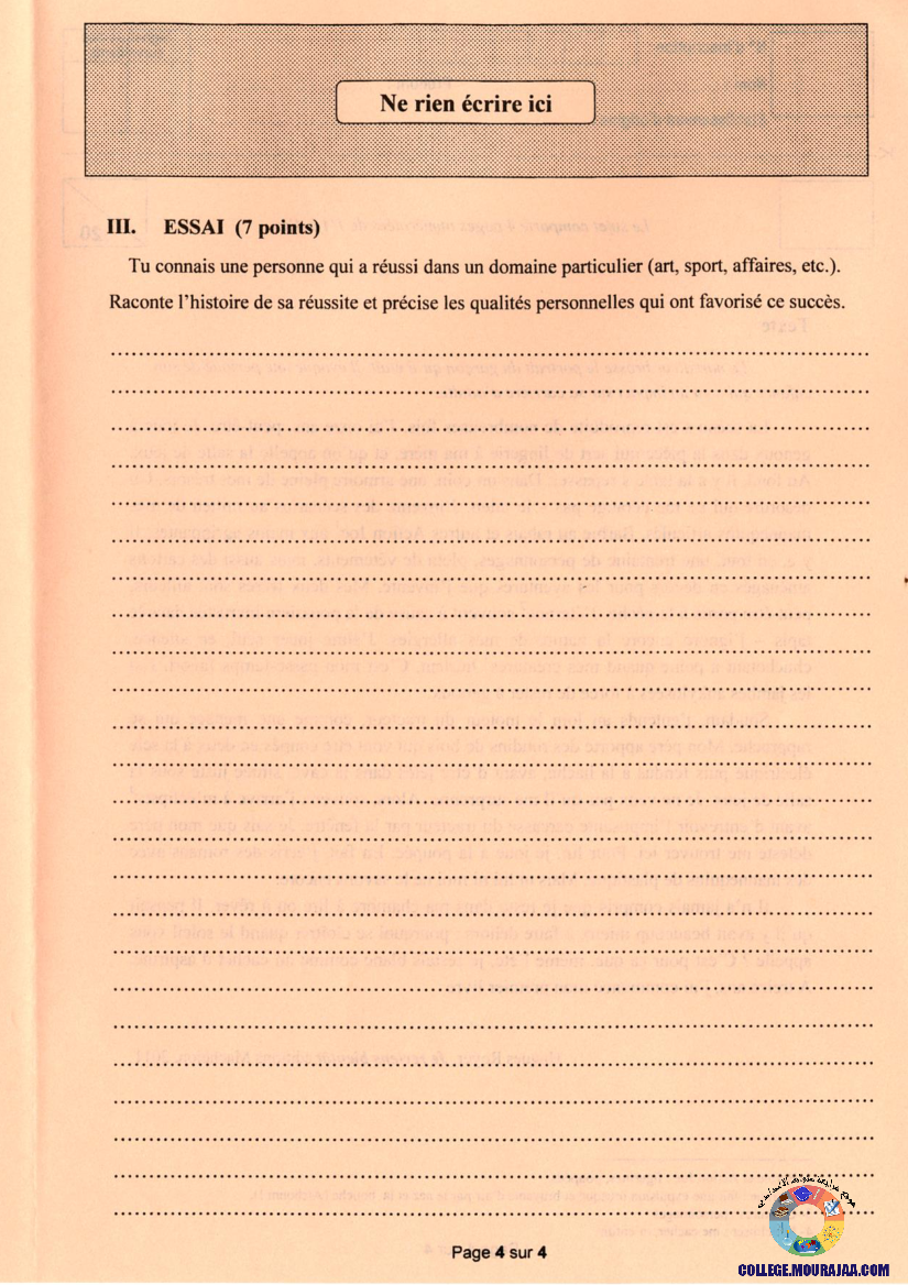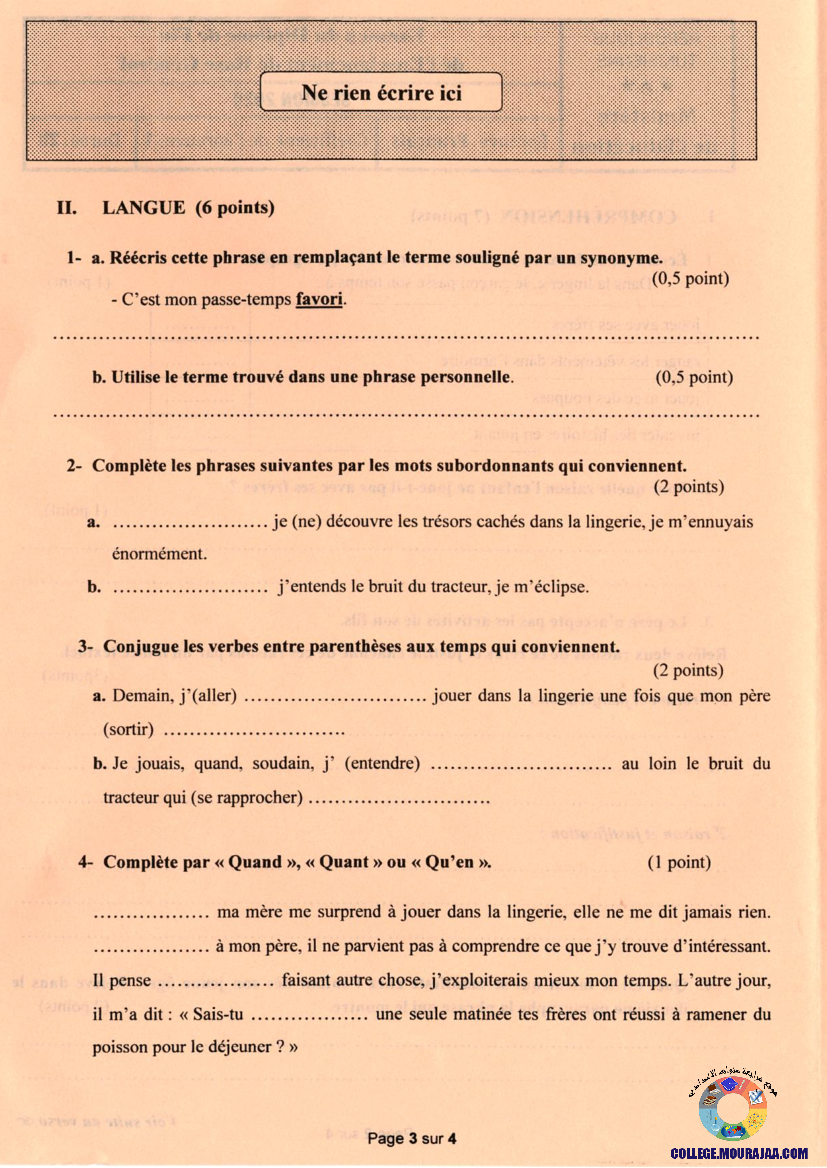 امتحان الفرنسية مناظرة النوفيام سنة 2020
