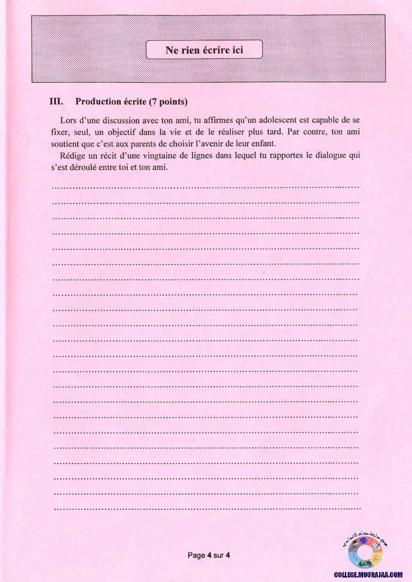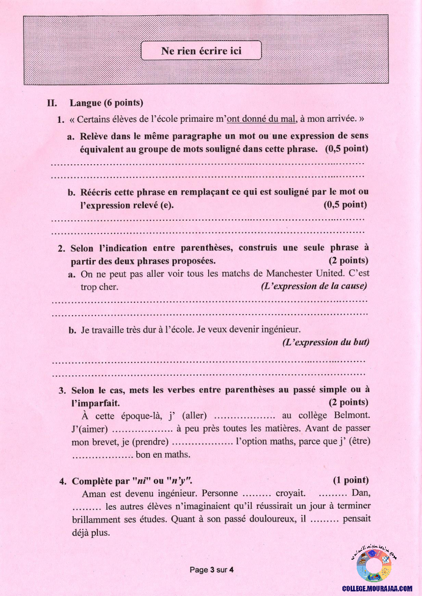 امتحان الفرنسية مناظرة النوفيام سنة 2021