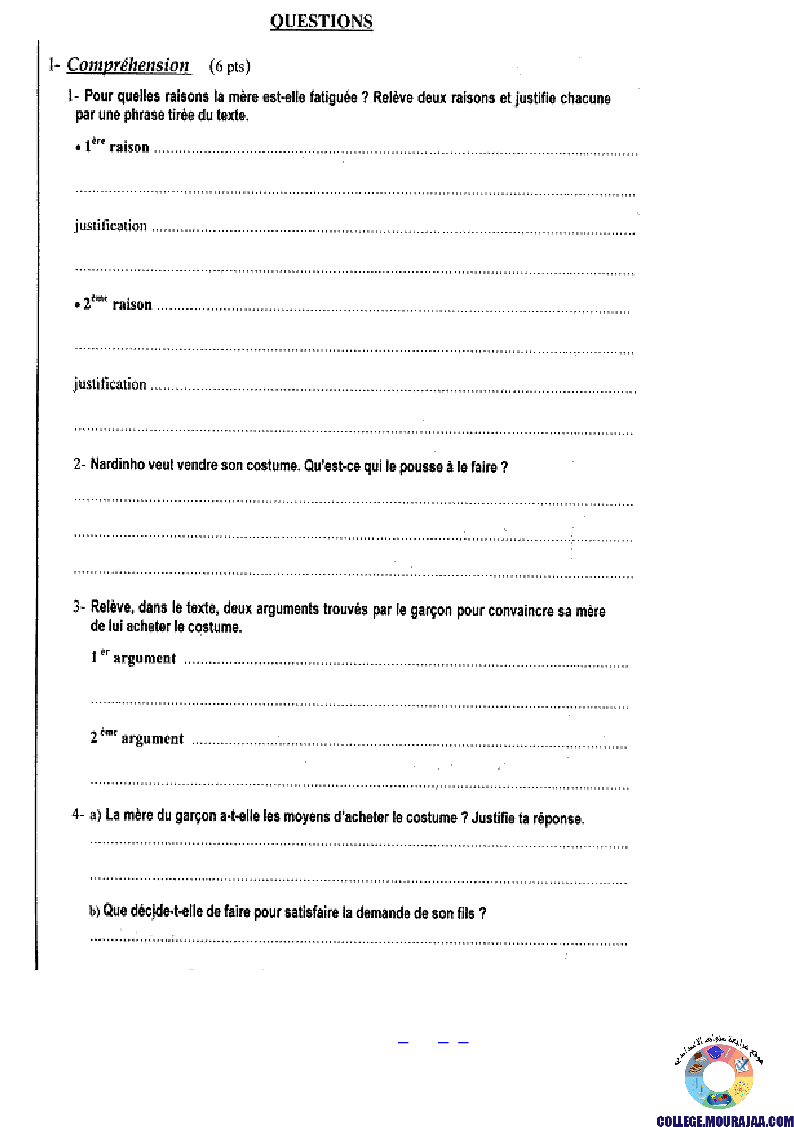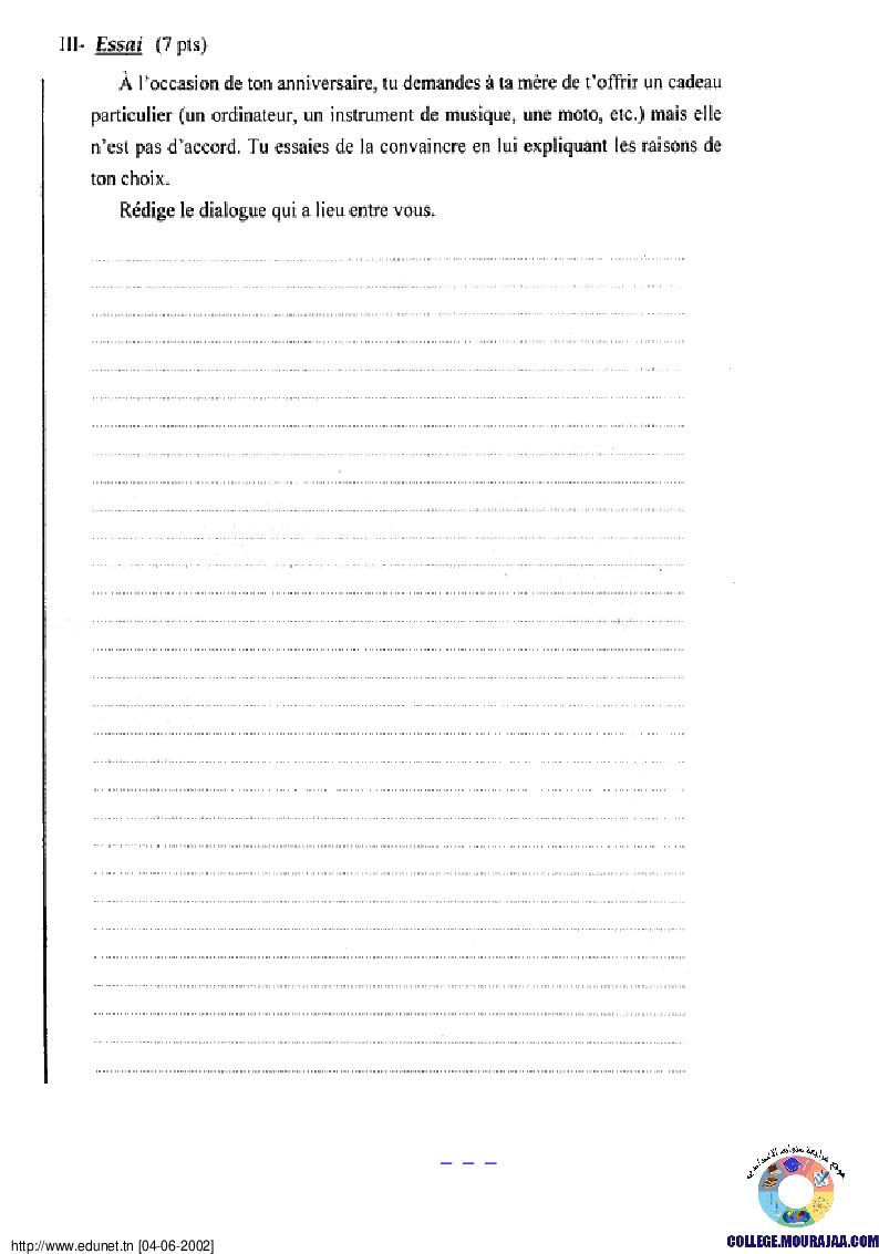 امتحان الفرنسية مناظرة النوفيام سنة 2002