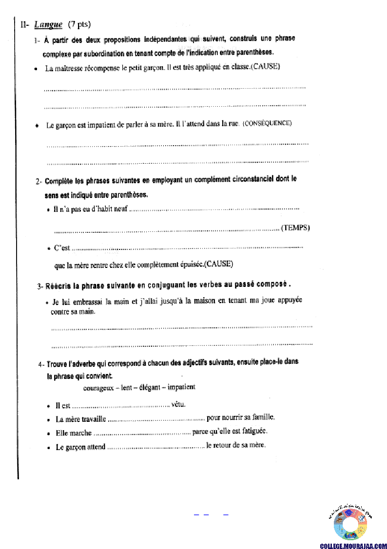 مناظرة شهادة ختم التعليم الاساسي في مادة الفرنسية لسنة 2002