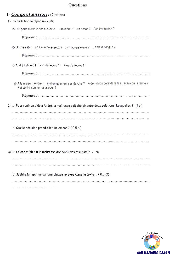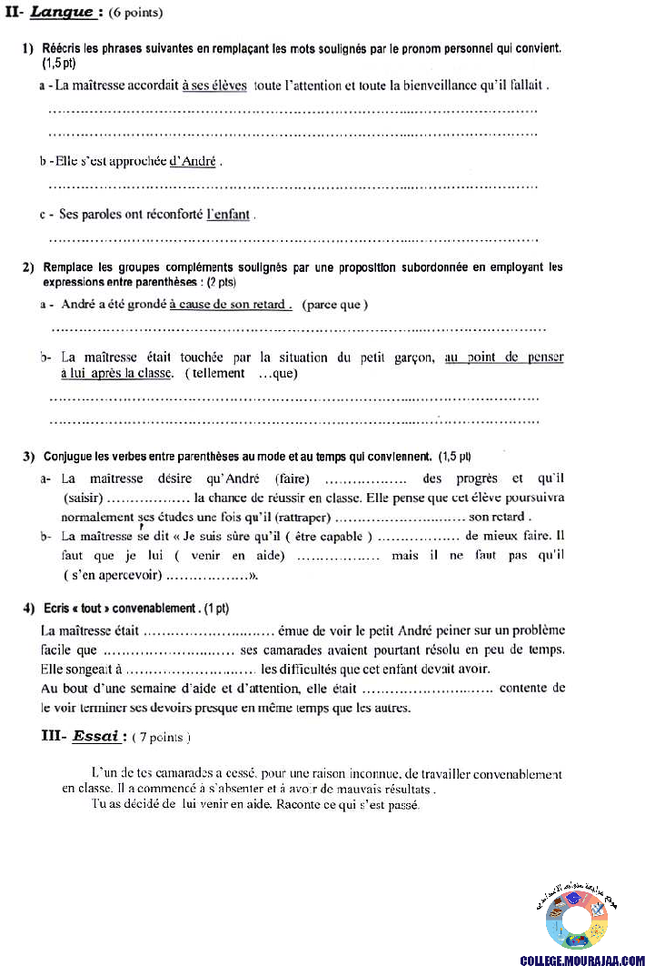 مناظرة شهادة ختم التعليم الاساسي في مادة الفرنسية لسنة 2006