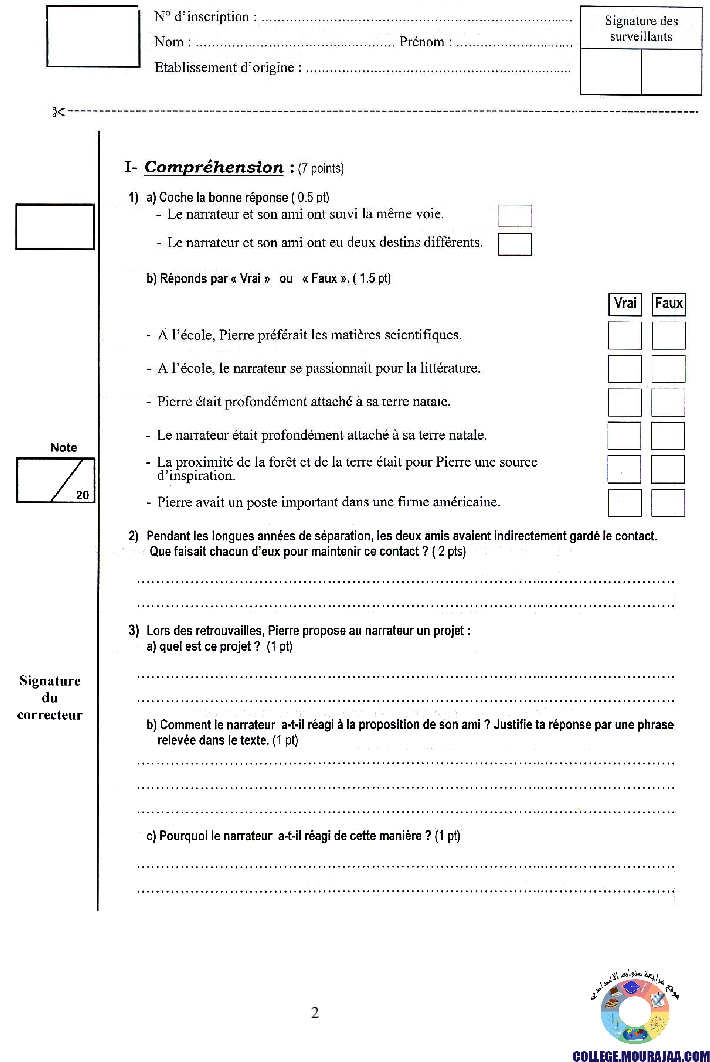 امتحان الفرنسية مناظرة النوفيام سنة 2007