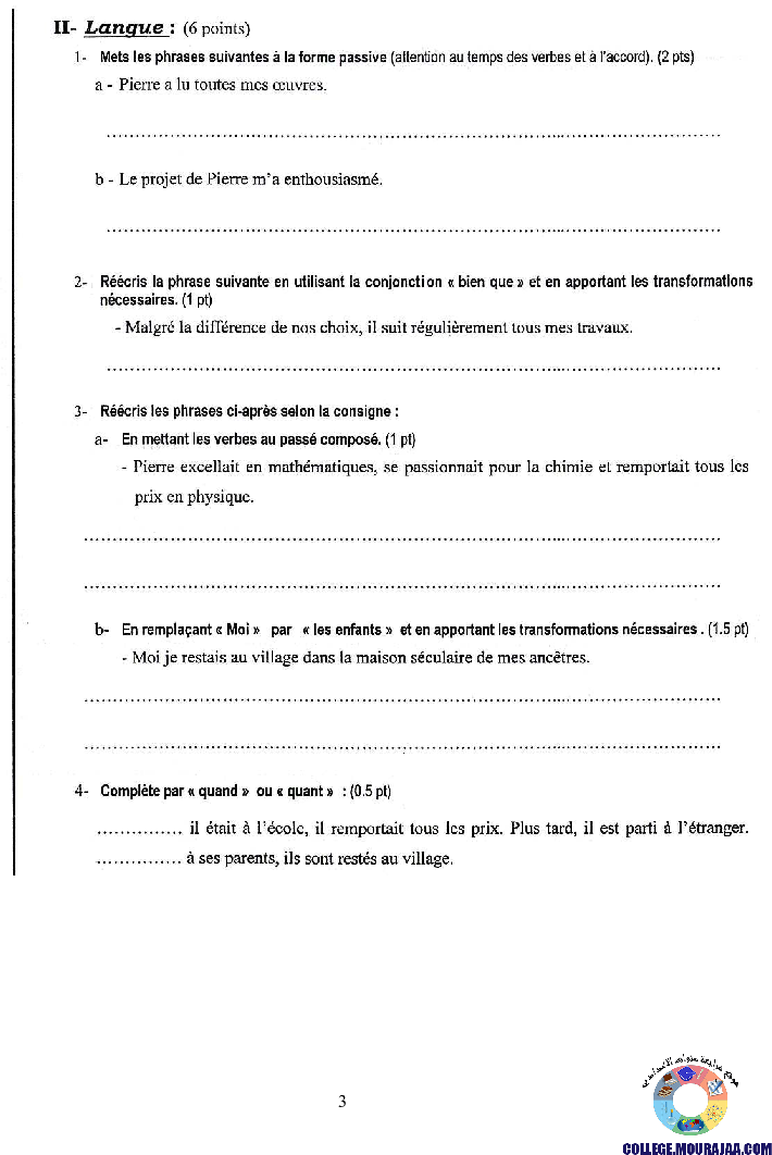 مناظرة شهادة ختم التعليم الاساسي في مادة الفرنسية لسنة 2007