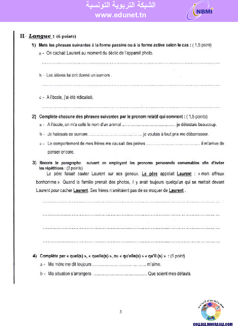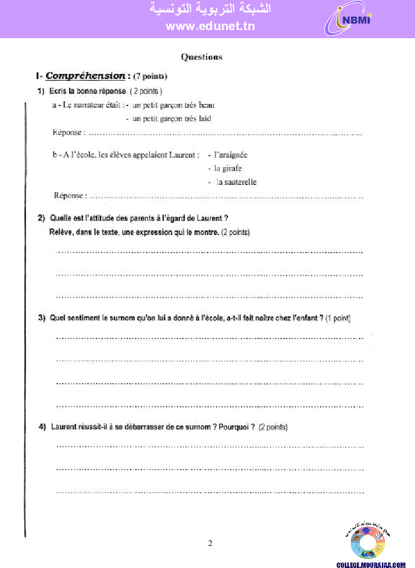 مناظرة شهادة ختم التعليم الاساسي في مادة الفرنسية لسنة 2008