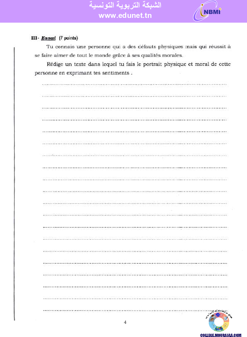 امتحان الفرنسية مناظرة النوفيام سنة 2008