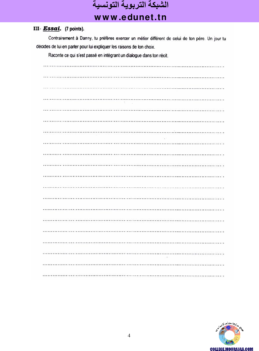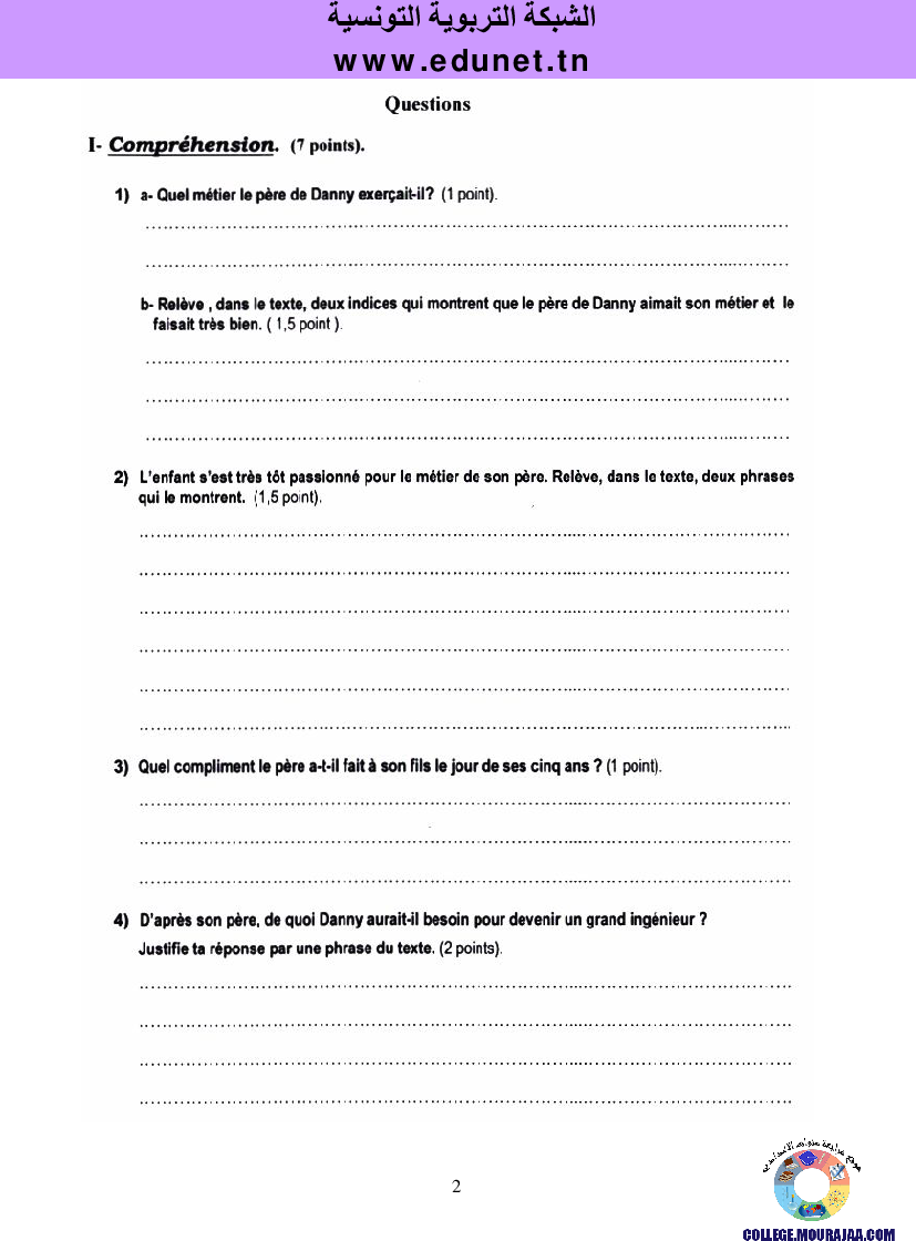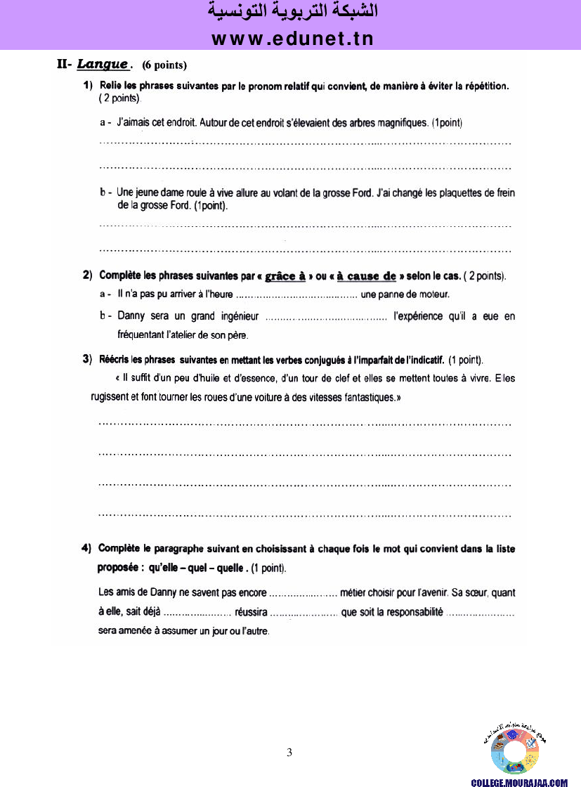مناظرة شهادة ختم التعليم الاساسي في مادة الفرنسية لسنة 2009