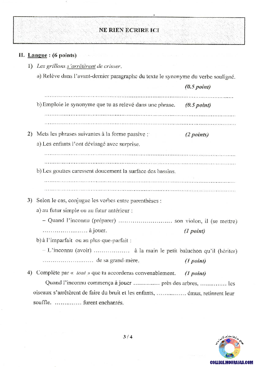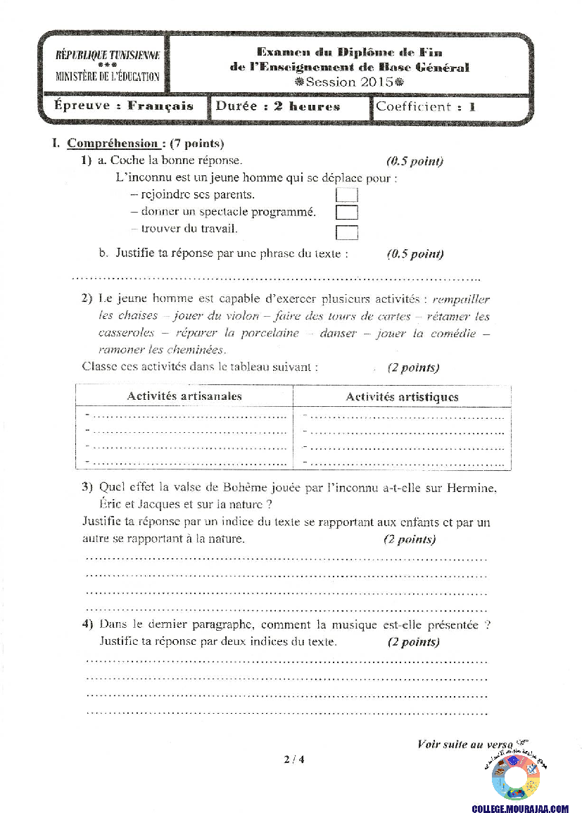 مناظرة شهادة ختم التعليم الاساسي في مادة الفرنسية لسنة 2015