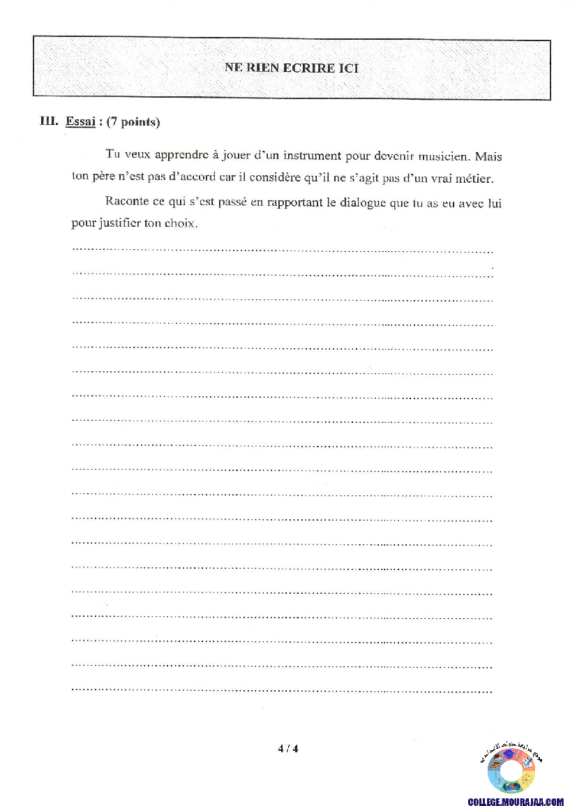 امتحان الفرنسية مناظرة النوفيام سنة 2015