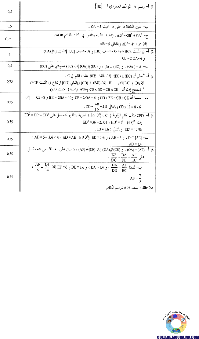 اصلاح امتحان الرياضيات مناظرة النوفيام سنة 2003
