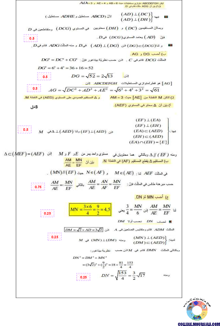 اصلاح امتحان الرياضيات مناظرة النوفيام سنة 2018