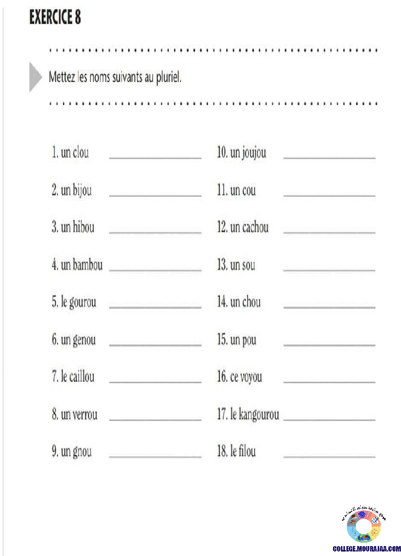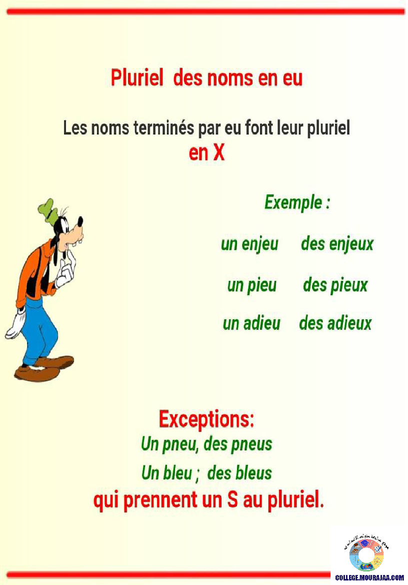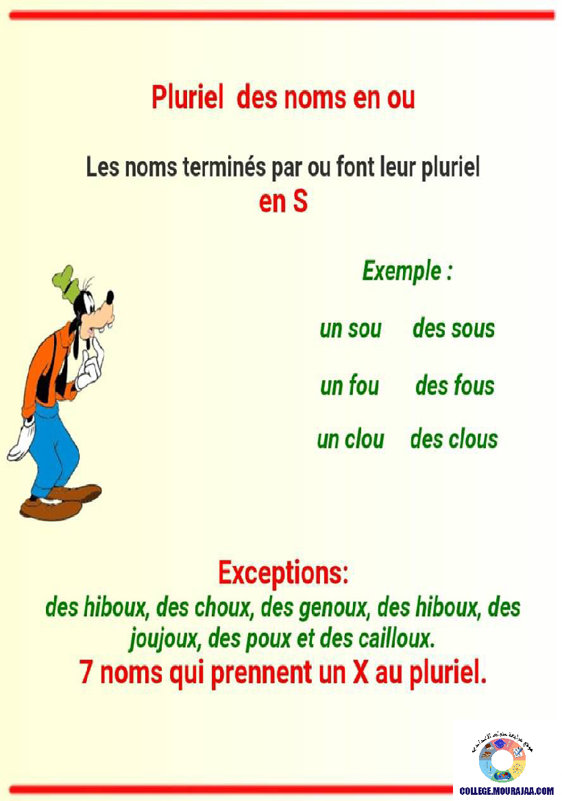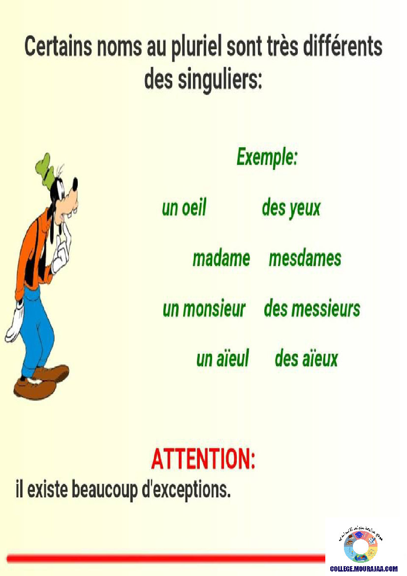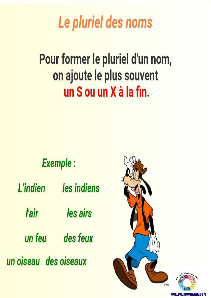 la leçon se deroule sur Pluriel-des-noms pour aider l eleve de huitieme annee Pour reviser ses cours et ses examens en le téléchargeant sous forme de fichier pdf ou en le visualisant sous forme d'images