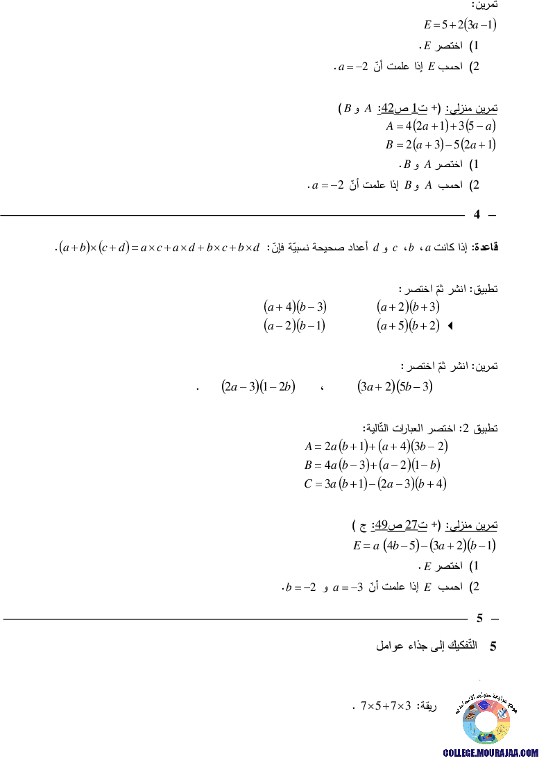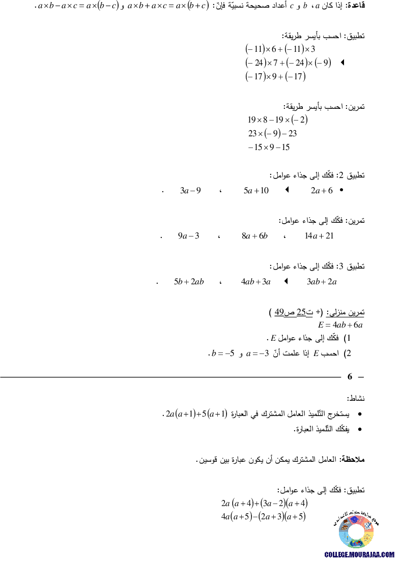 تحميل تلخيص درس الضرب في الاعداد الصحيحة في مادة الرياضيات