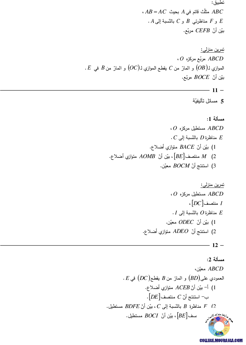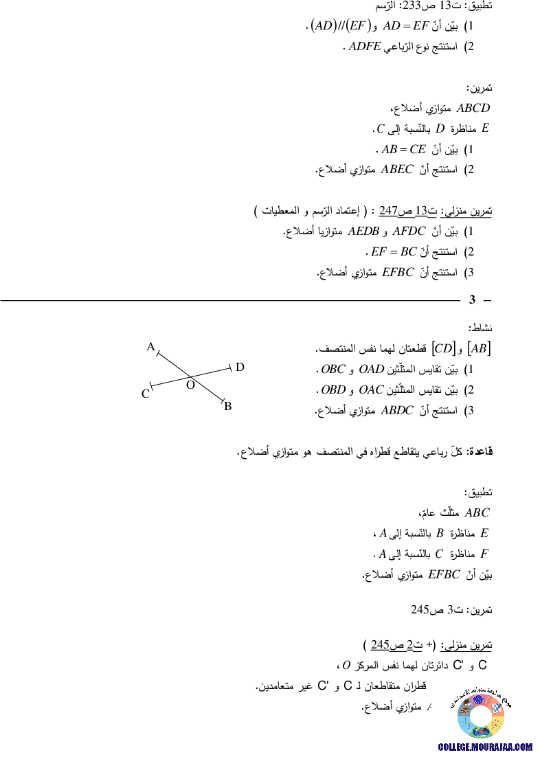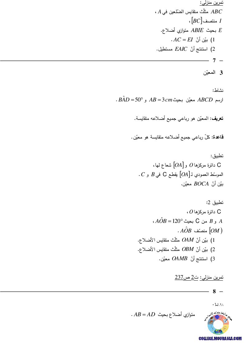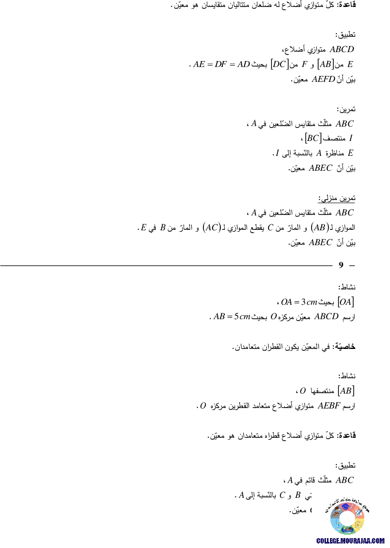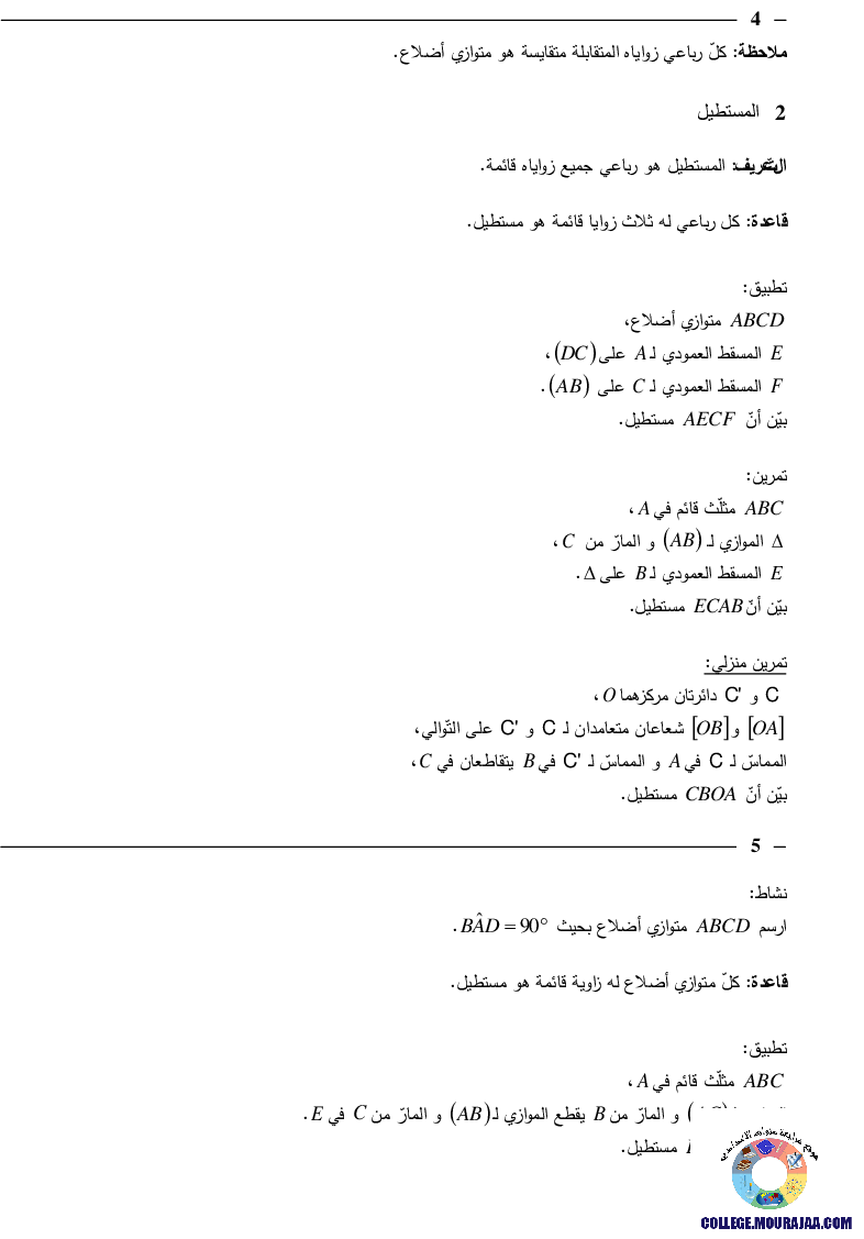 تحميل تلخيص درس رباعيات الاضلاع في مادة الرياضيات