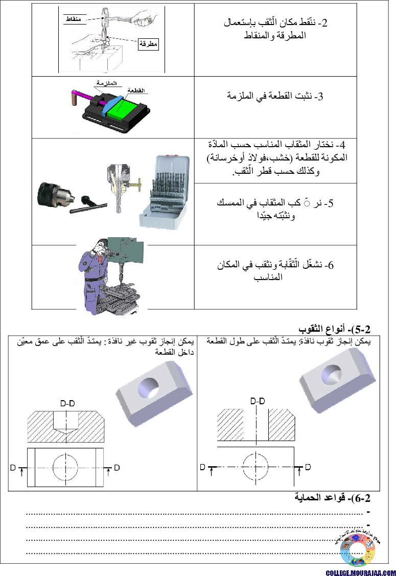 تلخيص درس الثقب و الثني في مادة التربية التكنولوجية