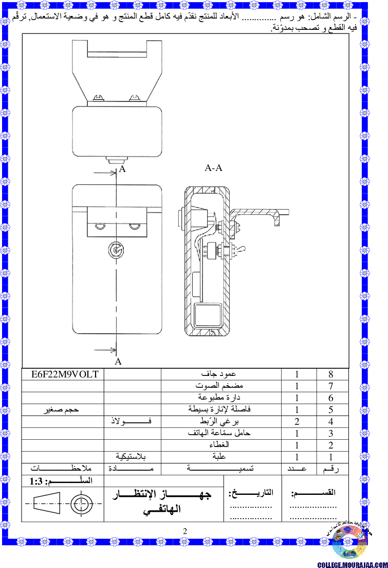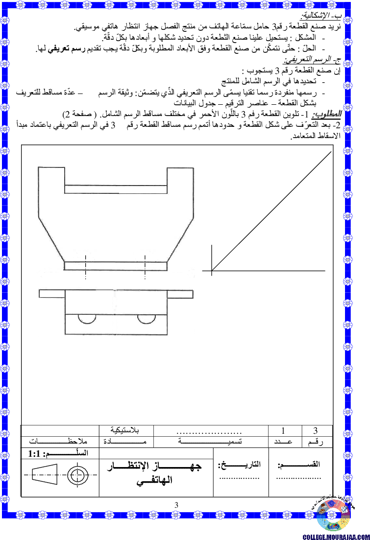 تحميل تلخيص درس الرسم التعريفي في مادة التربية التكنولوجية