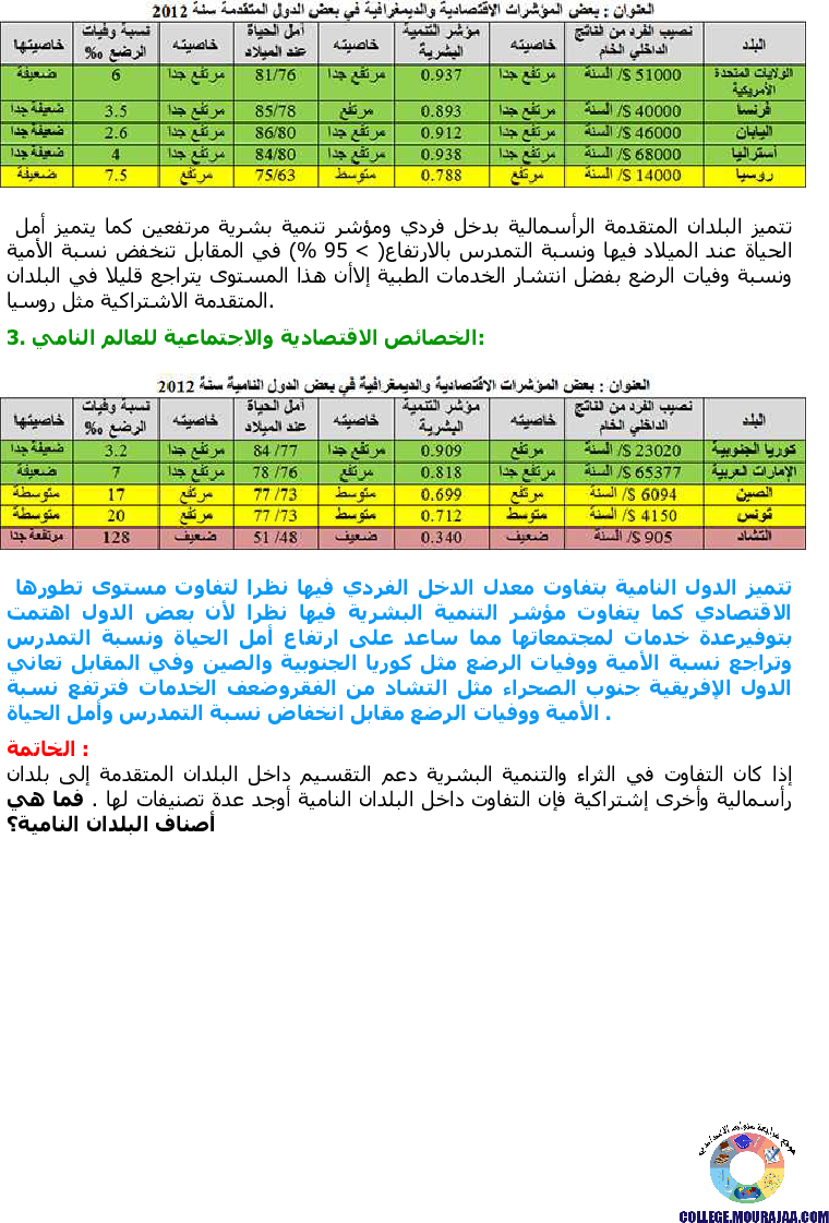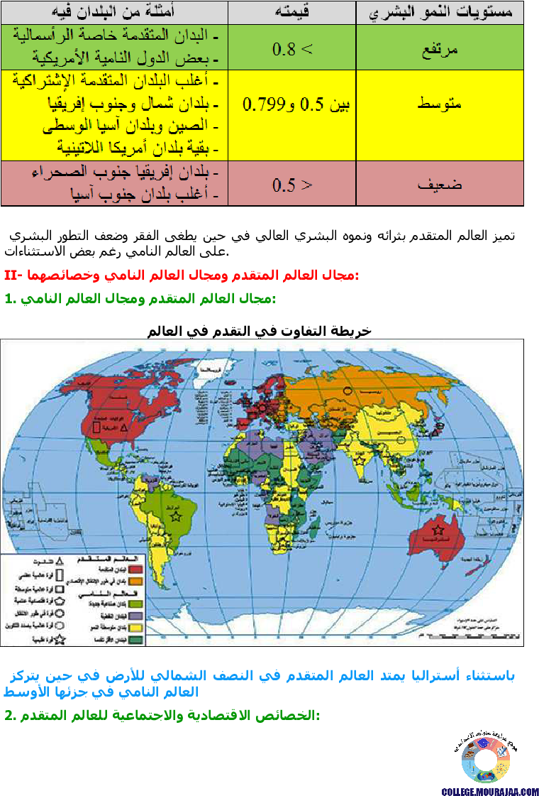 تحميل تلخيص درس عالم متقدم وعالم نام في مادة الجغرافيا