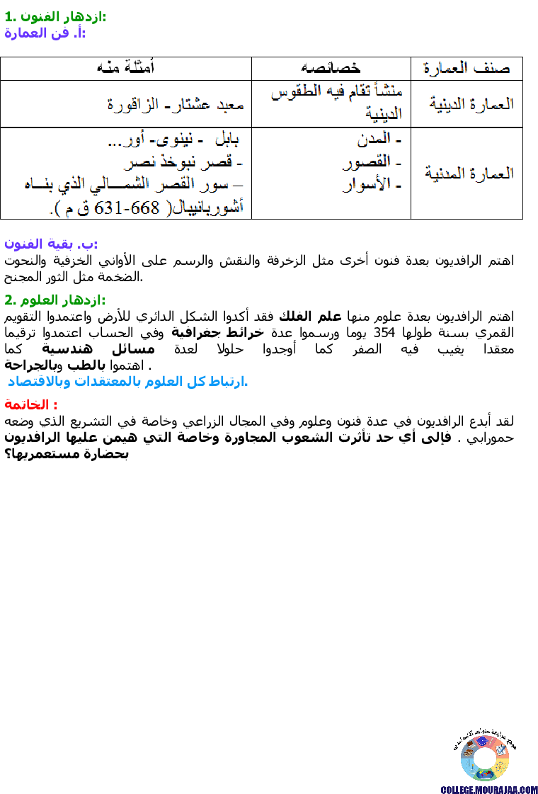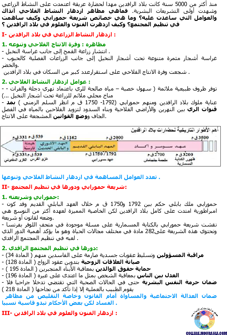تحميل تلخيص درس بلاد الرافدين في مادة التاريخ