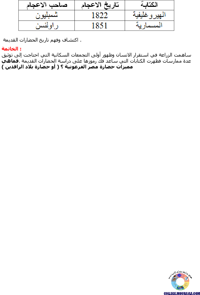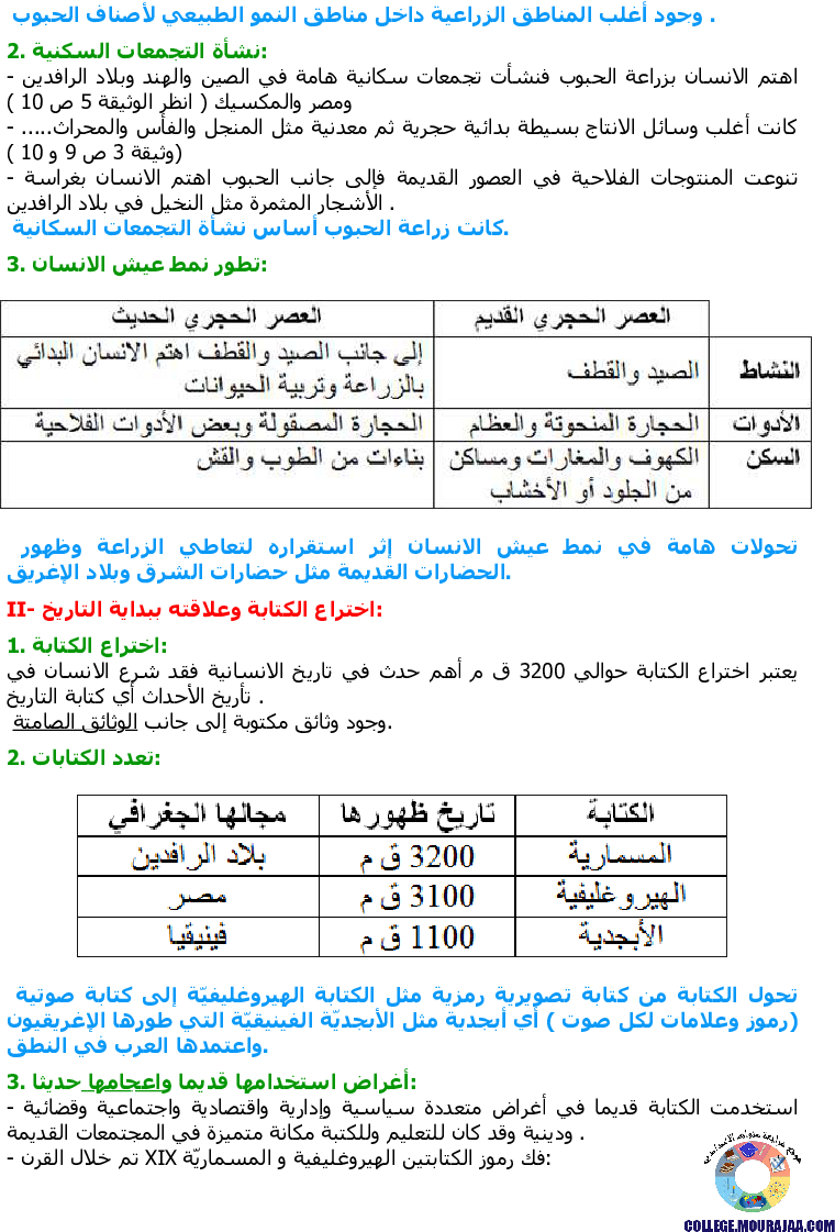 تحميل تلخيص درس ظهور الزراعة والكتابة في مادة التاريخ