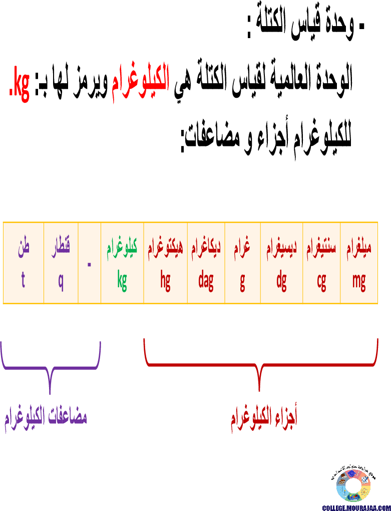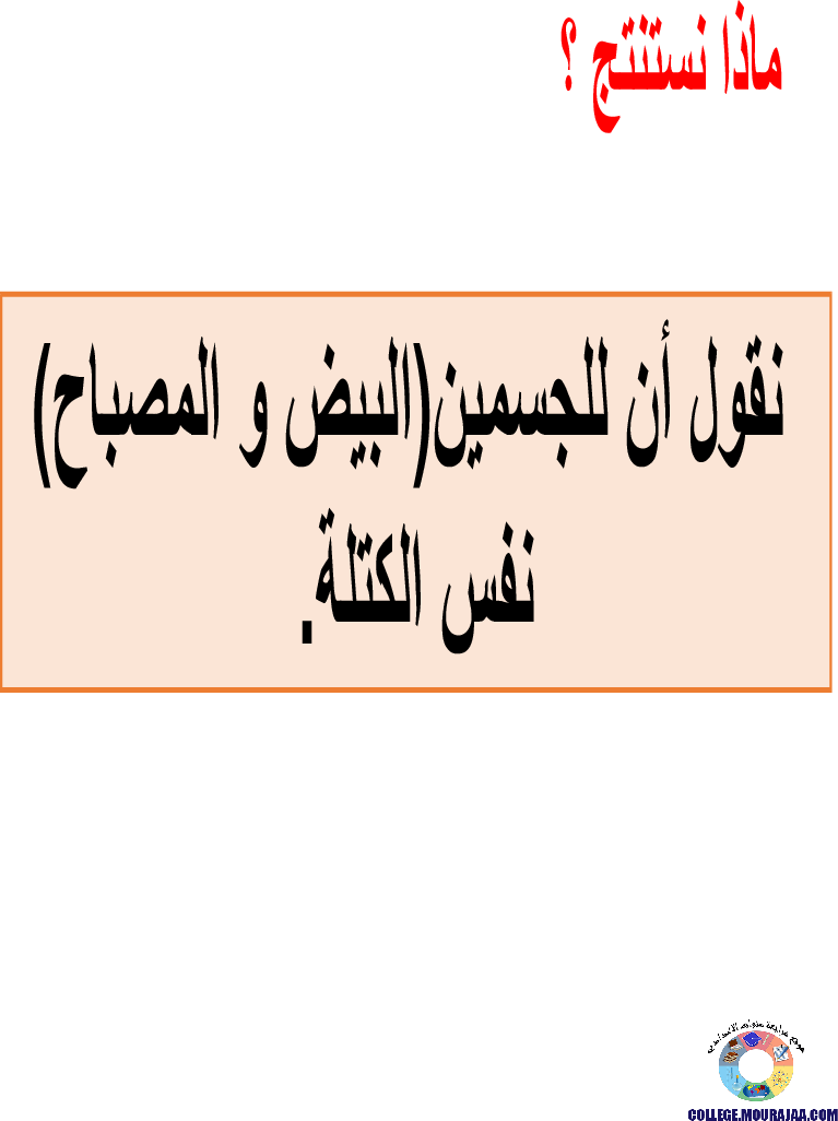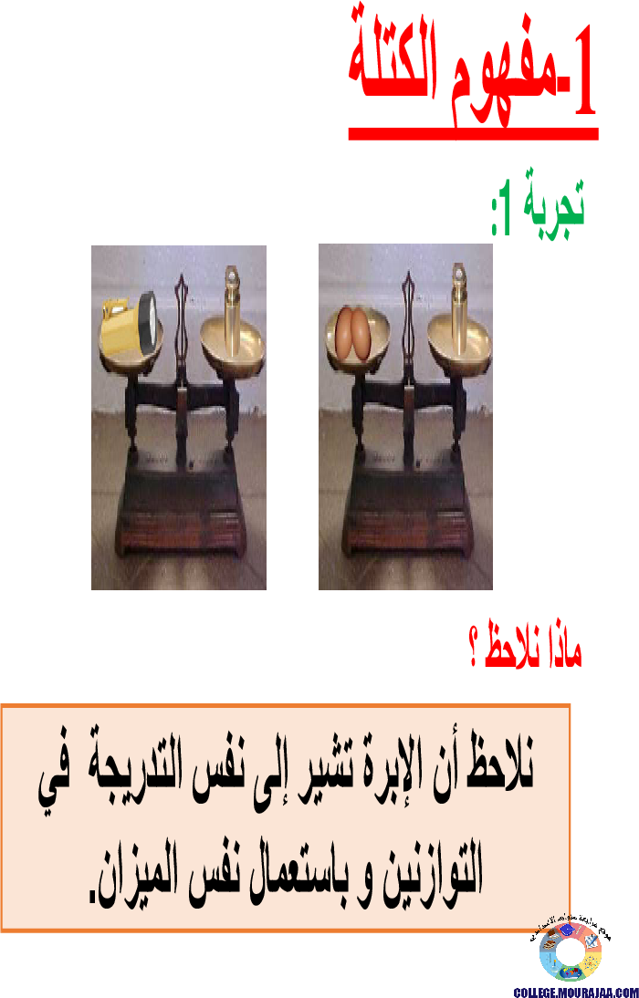 درس حول الكتلة في مادة العلوم الفيزيائية لتلاميذ سنة السابعة اساسي