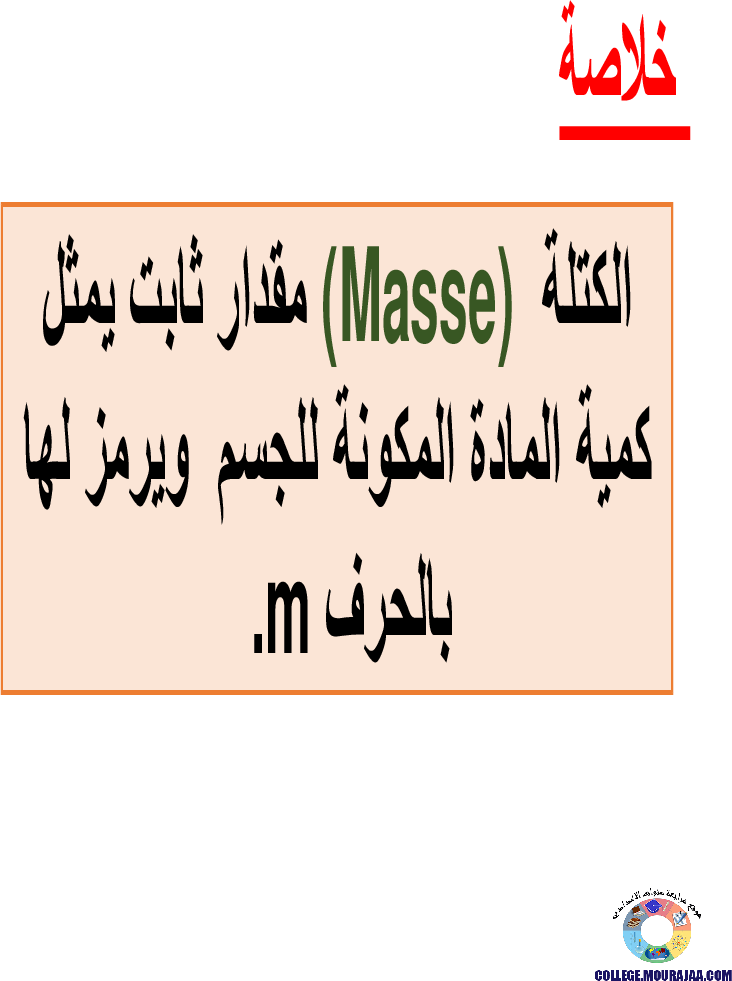 تلخيص درس الكتلة في مادة العلوم الفيزيائية