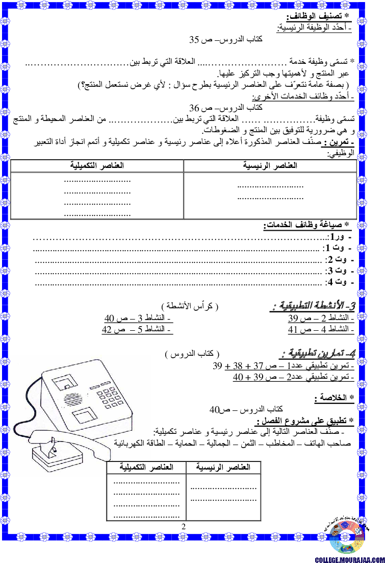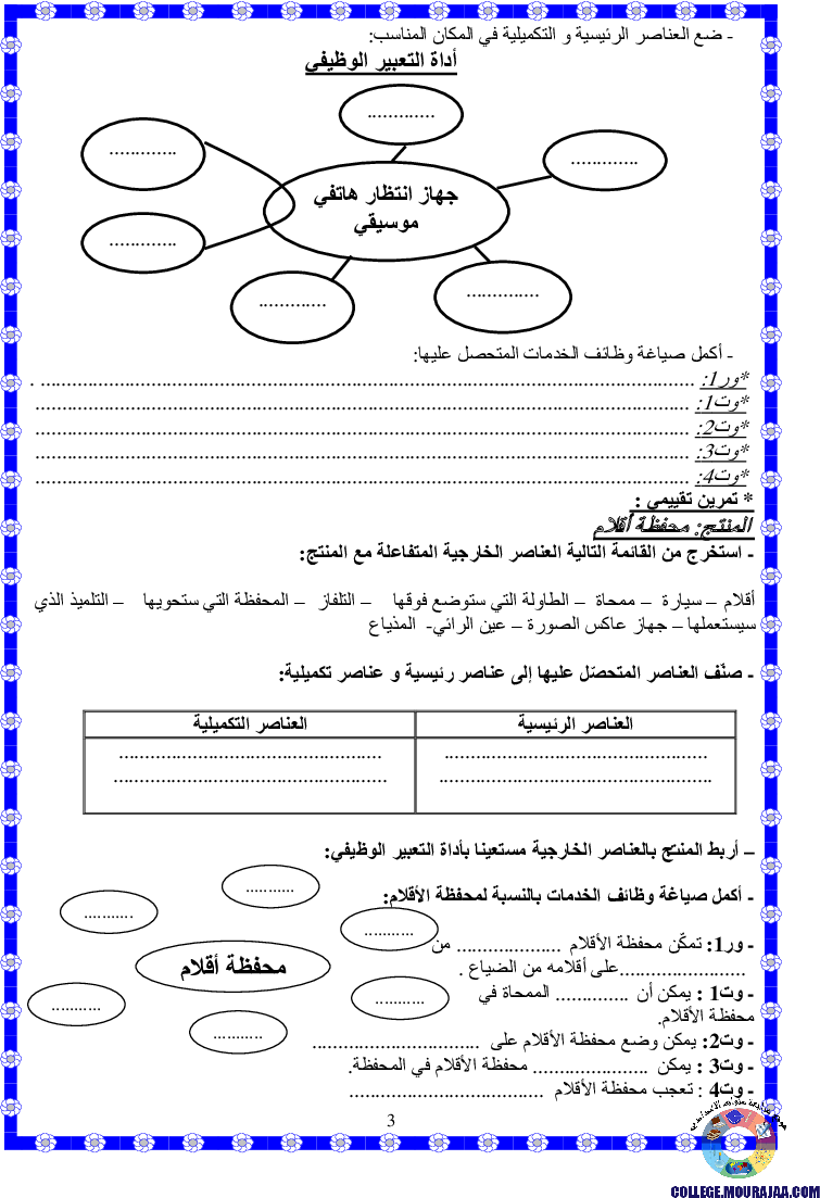 تمارين تمارين تطبيقية التعبير الوظيفي في مادة التربية التكنولوجية
