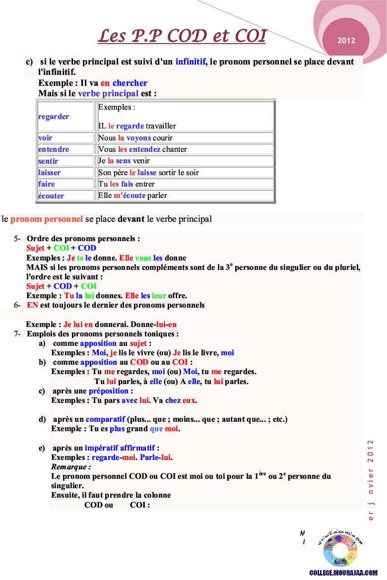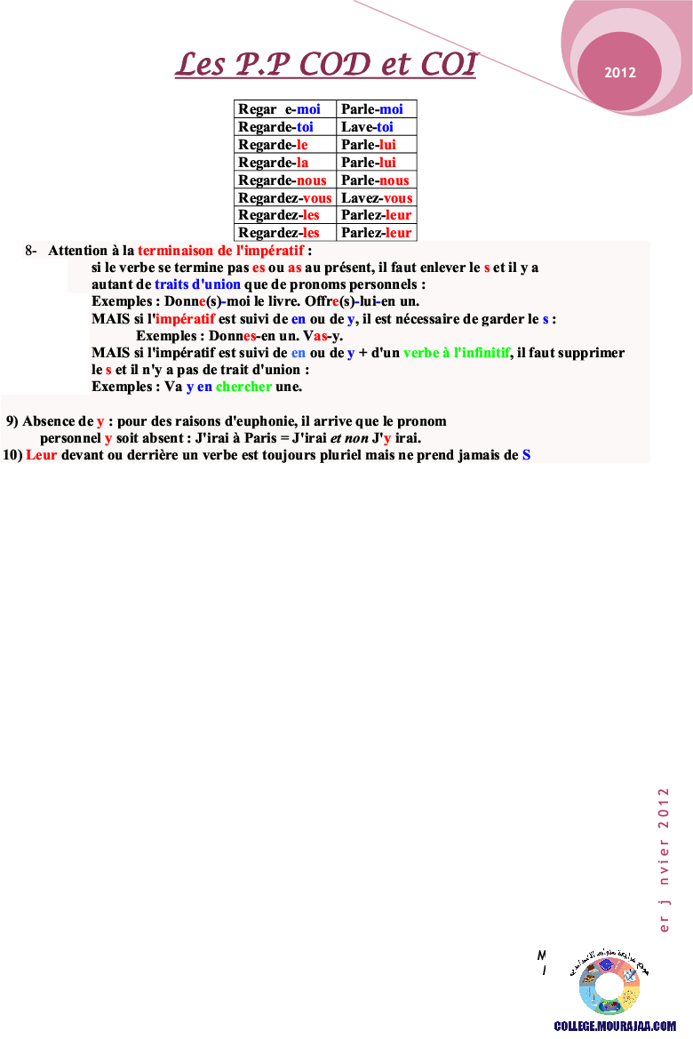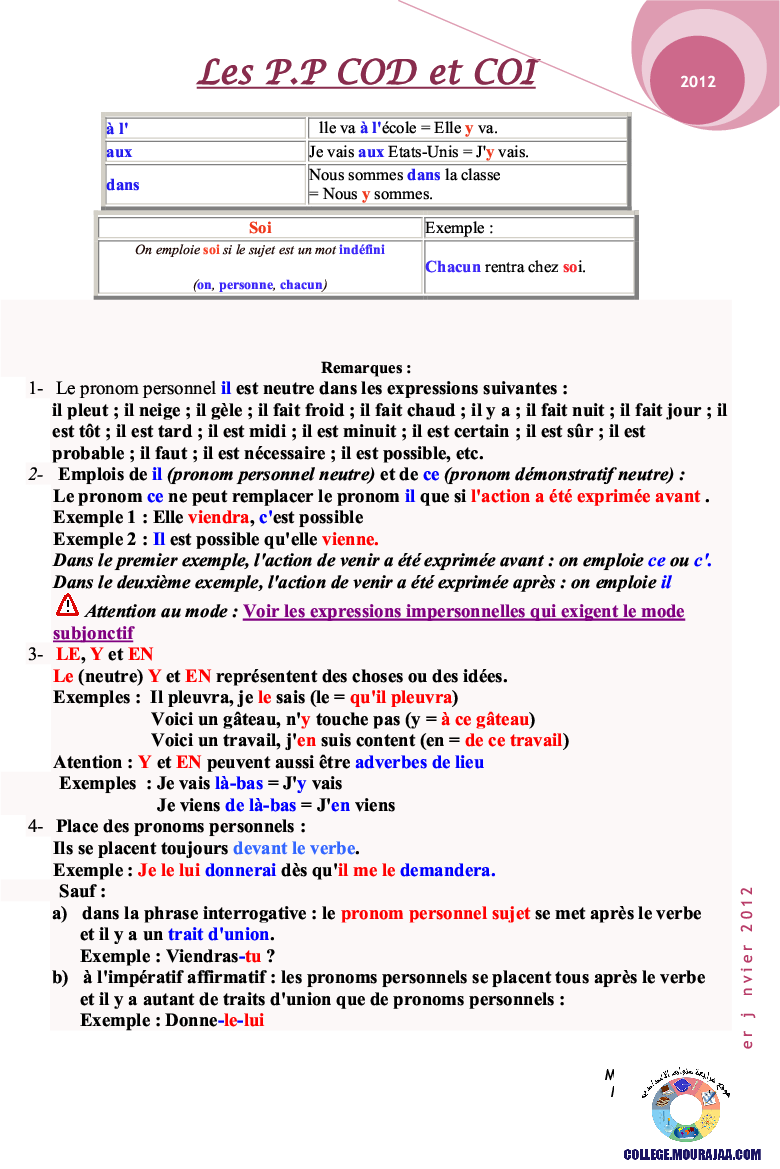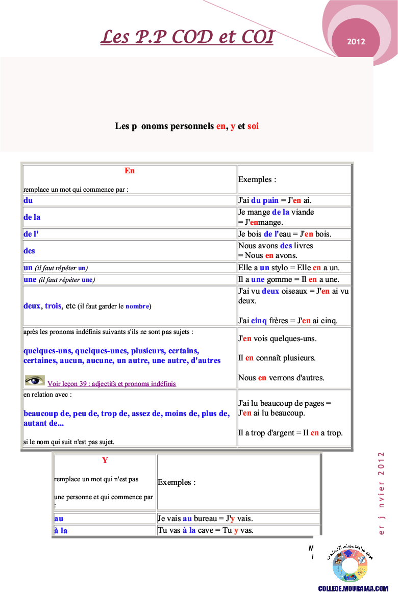 la leçon se deroule sur pronoms personels pour aider l eleve de neuvieme annee Pour reviser ses cours et ses examens en le téléchargeant sous forme de fichier pdf ou en le visualisant sous forme d'images