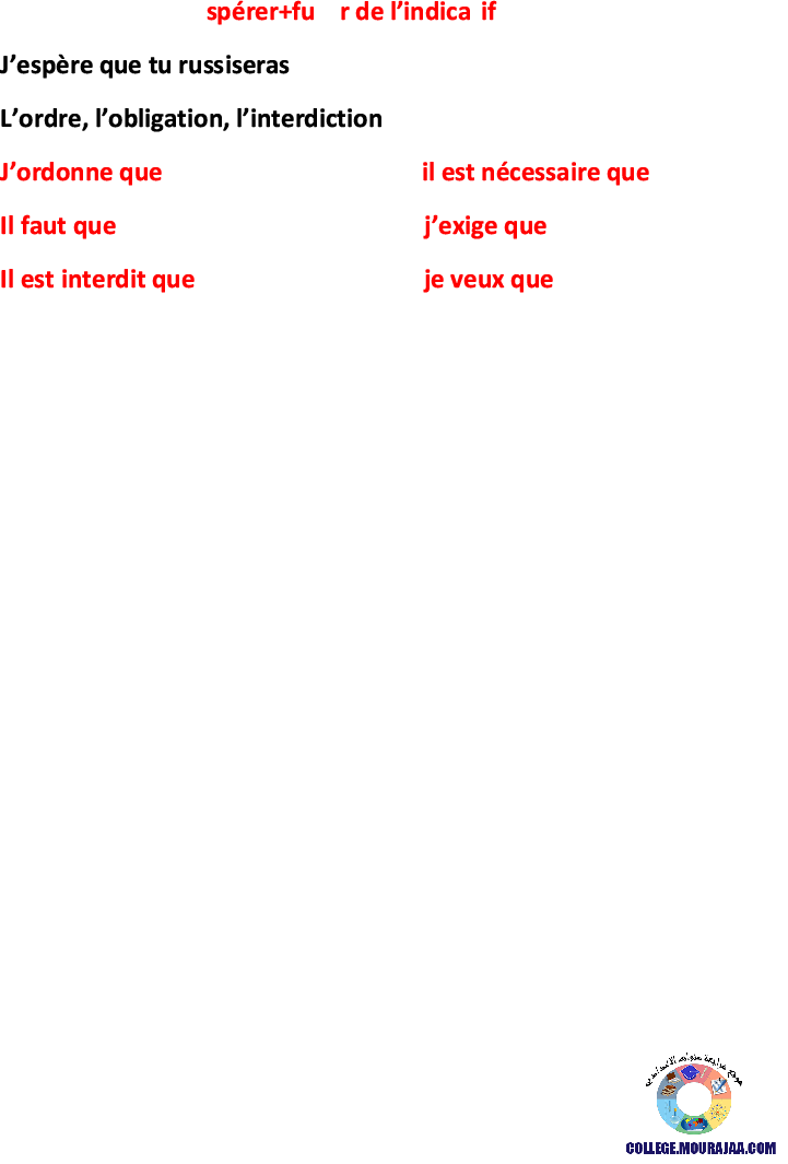 La leçon consiste à définir et résumer subjonctif present et des informations à ce sujet avec des images pour simplifier la leçon subjonctif present au matiere francais pour francais college .