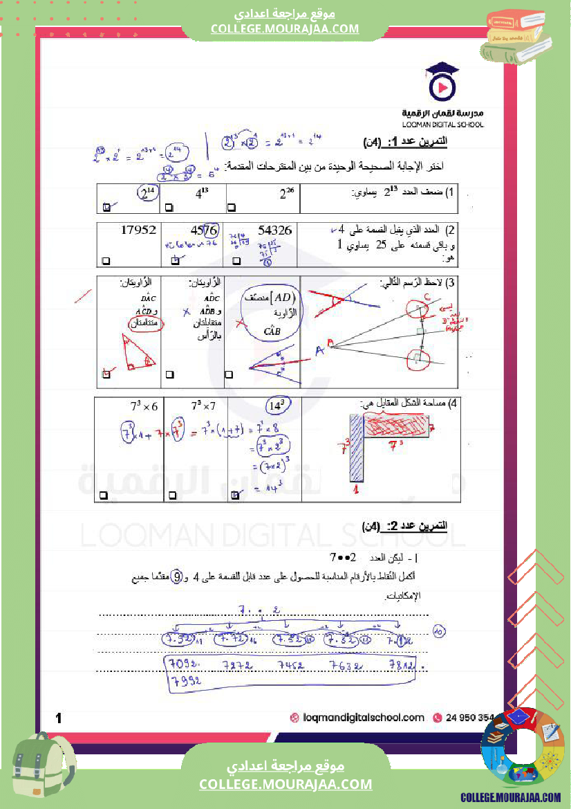مراجعة للامتحانات سنة 7