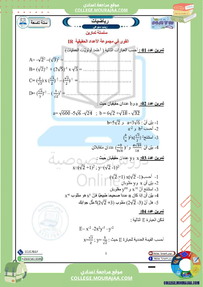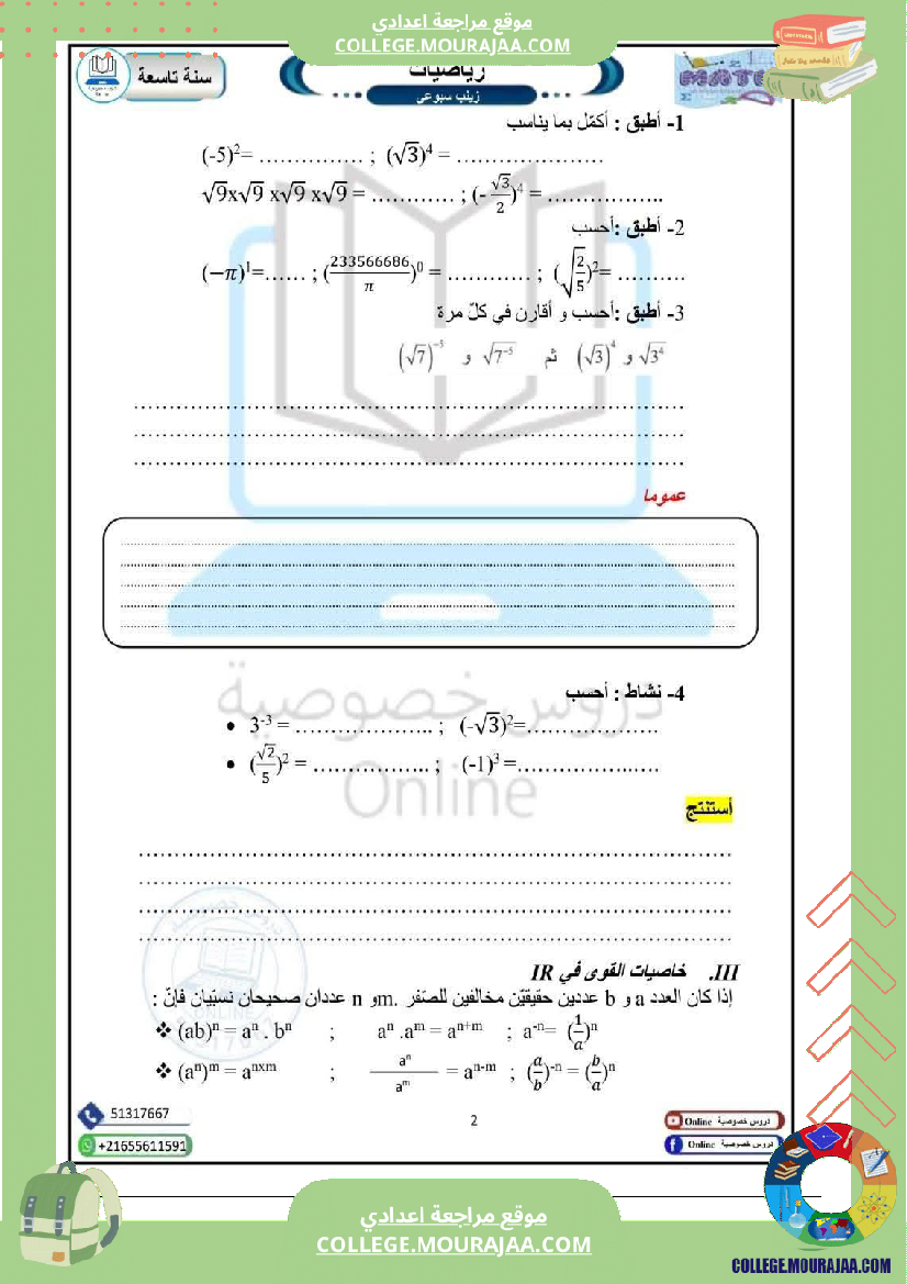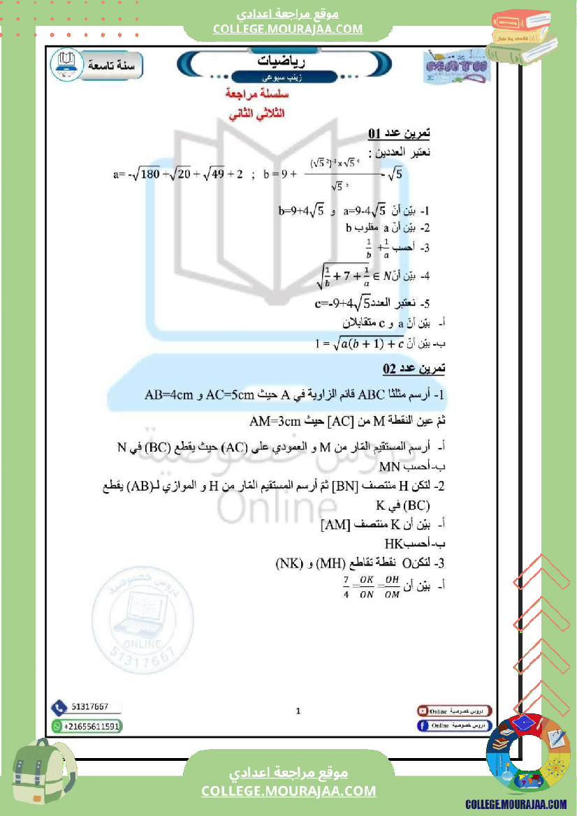 رياضيات سنة تاسعة