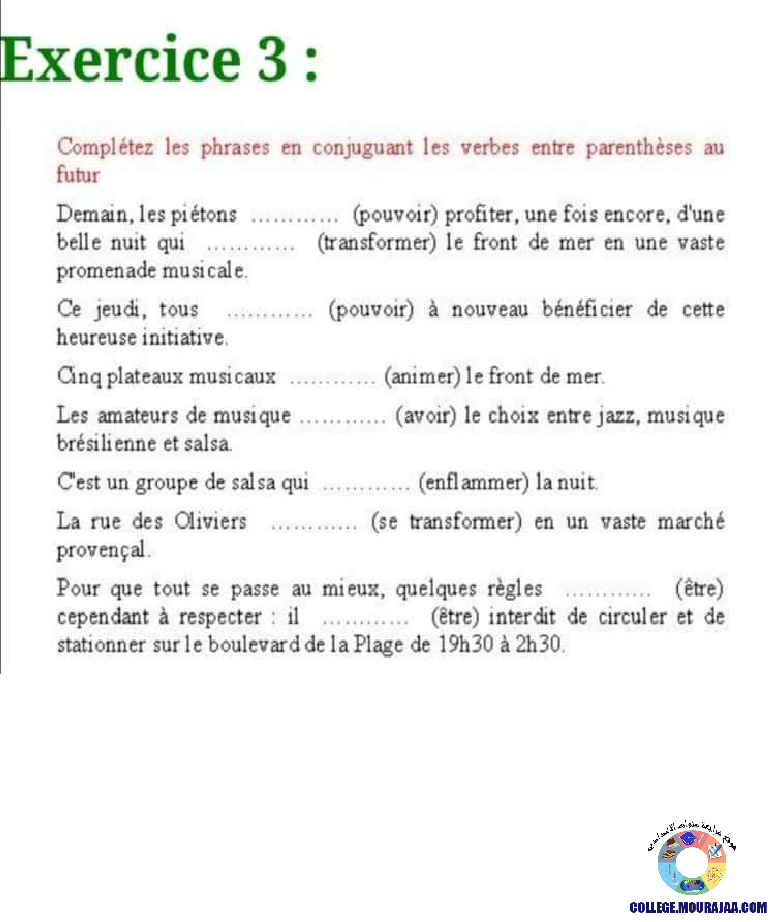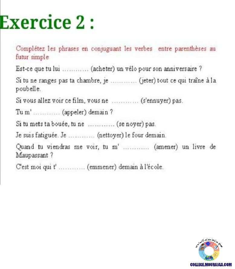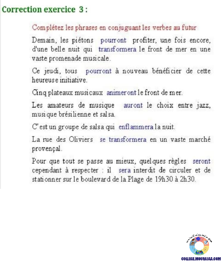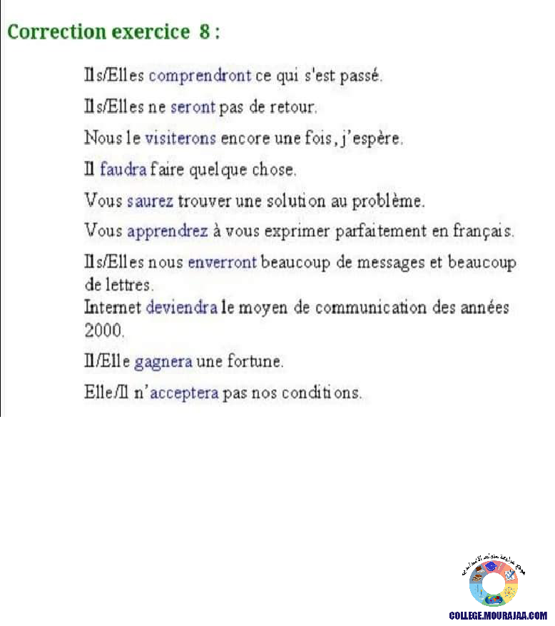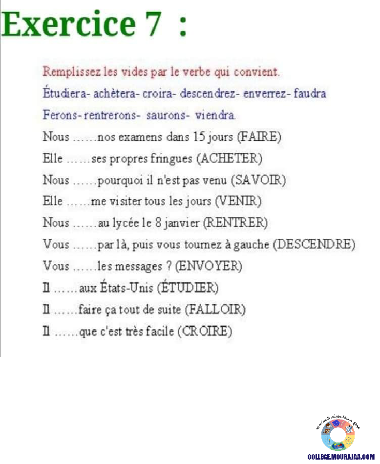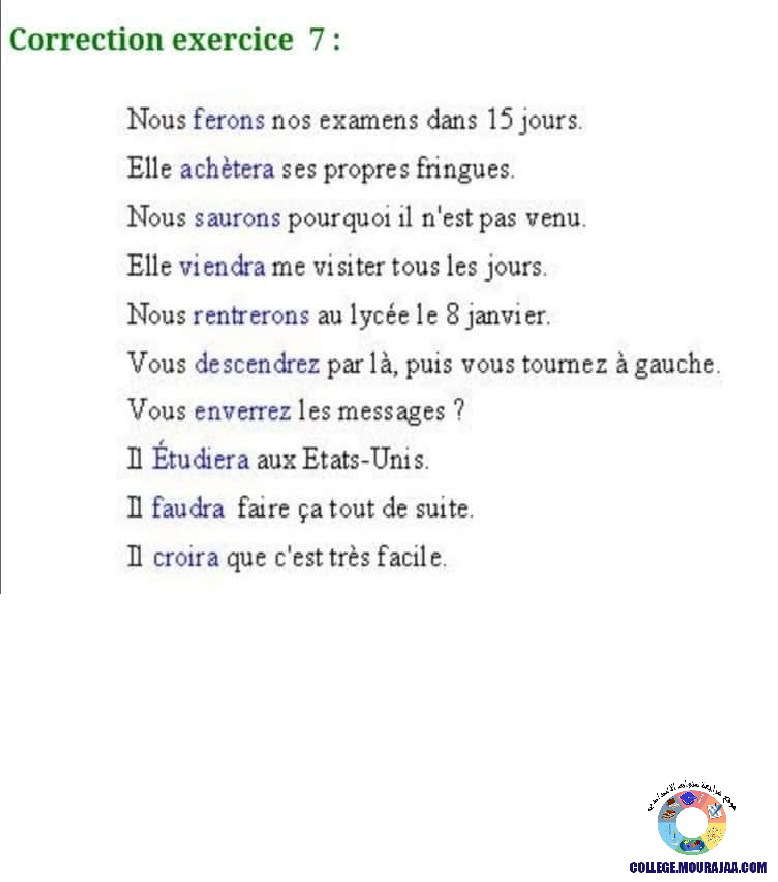 la leçon se deroule sur le futur simple pour aider l eleve de septieme annee Pour reviser ses cours et ses examens en le téléchargeant sous forme de fichier pdf ou en le visualisant sous forme d'images