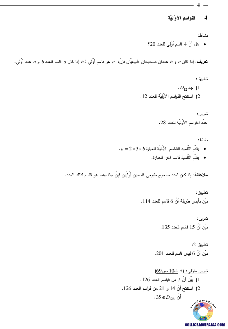 درس حول الاعداد الاولية في مادة الرياضيات لتلاميذ سنة السابعة اساسي