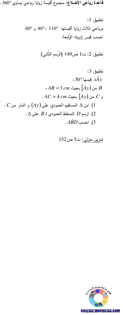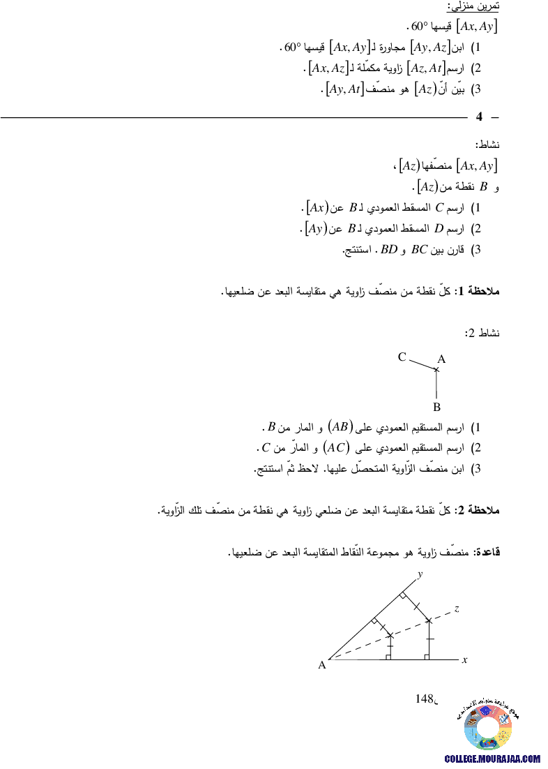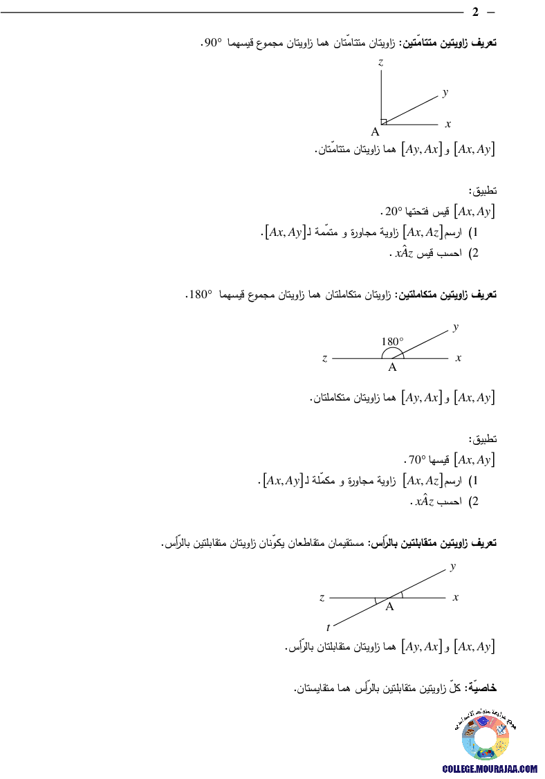 درس حول الزوايا في مادة الرياضيات لتلاميذ سنة السابعة اساسي