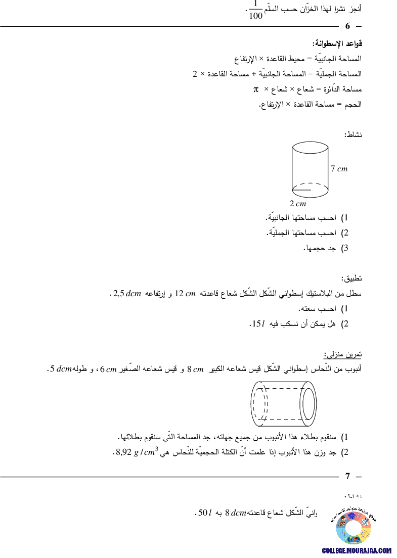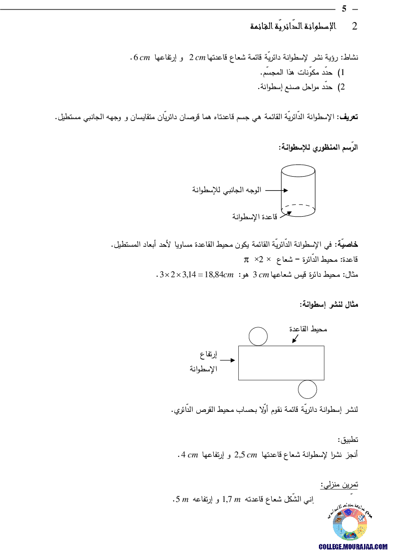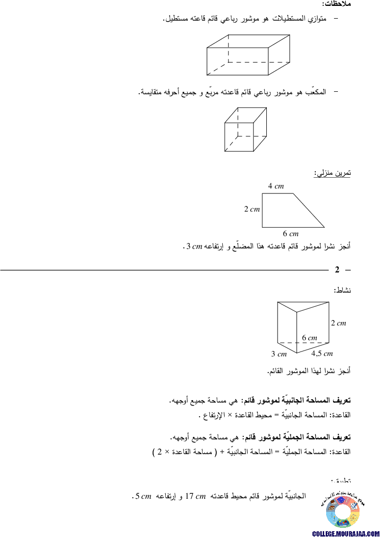 درس حول الموشور القائم و الاسطوانة في مادة الرياضيات لتلاميذ سنة السابعة اساسي