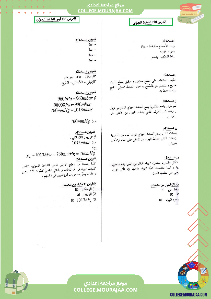 السابعة اساسي فيزياء اصلاح