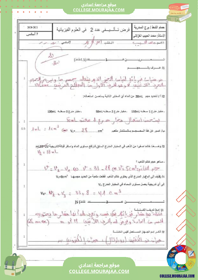 علوم فيزيائية سنة سابعة
