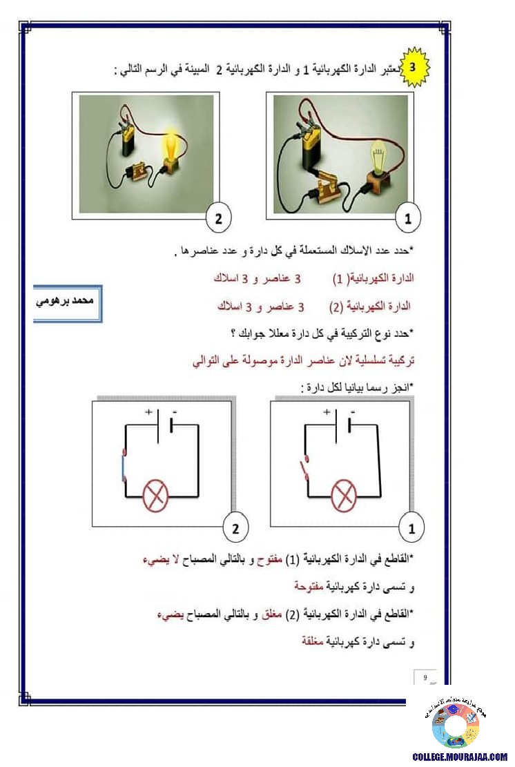 تحميل تلخيص درس الدارة الكهربائية في مادة العلوم الفيزيائية