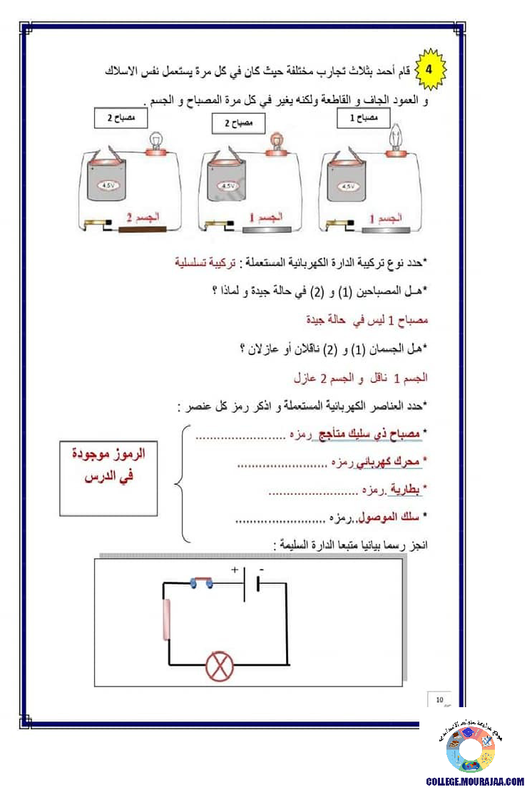 تلخيص درس الدارة الكهربائية في مادة العلوم الفيزيائية