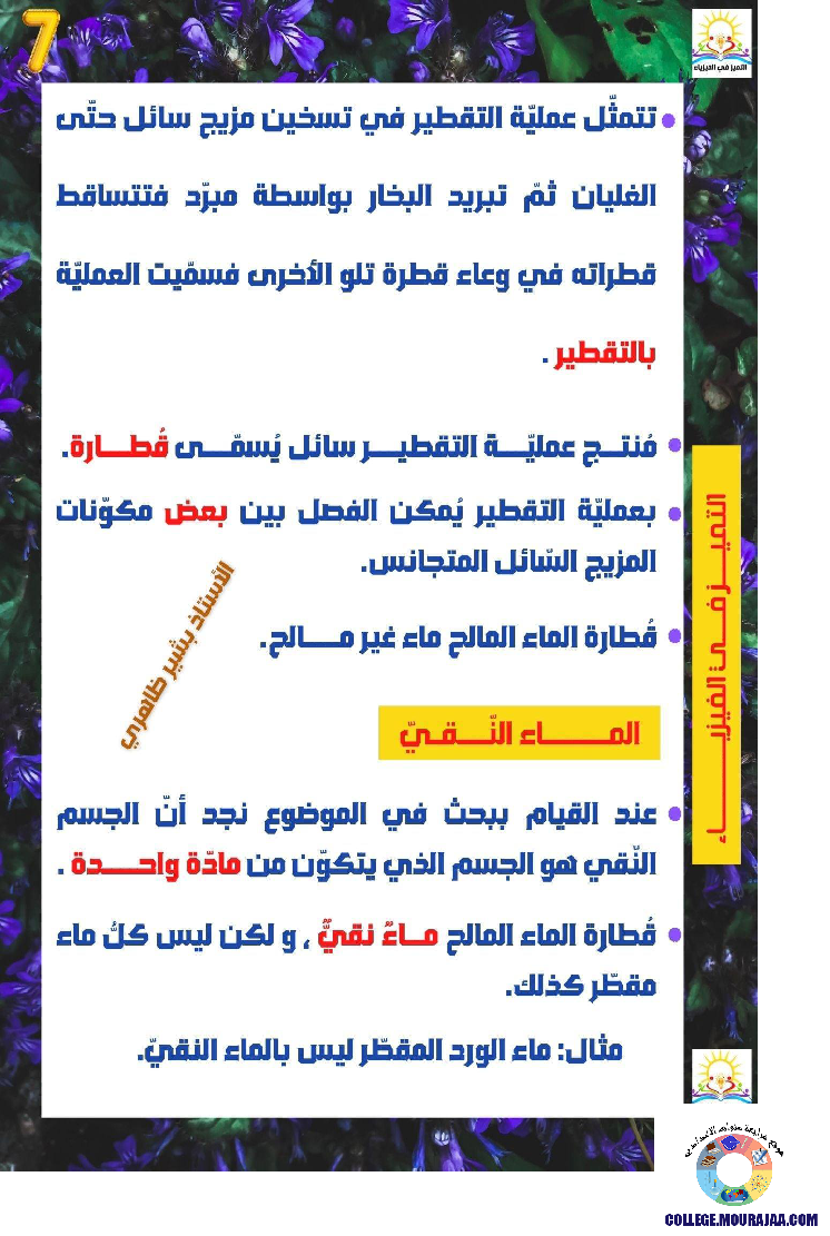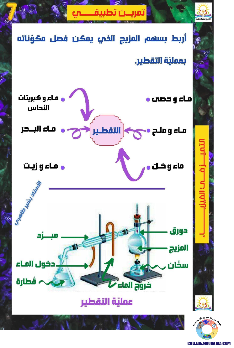 درس حول معالجة الماء بالتقطير في مادة العلوم الفيزيائية لتلاميذ سنة السابعة اساسي