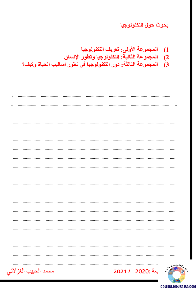 المزيد من التلاخيص و الدروس لتلاميذ سنة السابعة اساسي في مادة التربية التكنولوجية جاهزة للتحميل