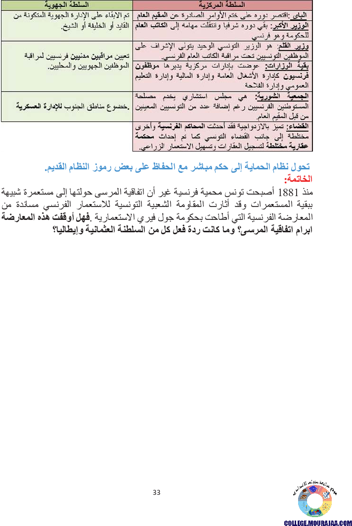 درس حول احتلال تونس وانتصاب الحماية في مادة التاريخ لتلاميذ سنة الثامنة اساسي