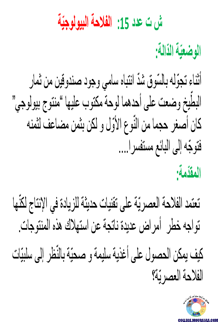 درس حول الفلاحة البيولوجية في مادة علوم الحياة و الارض لتلاميذ سنة الثامنة اساسي