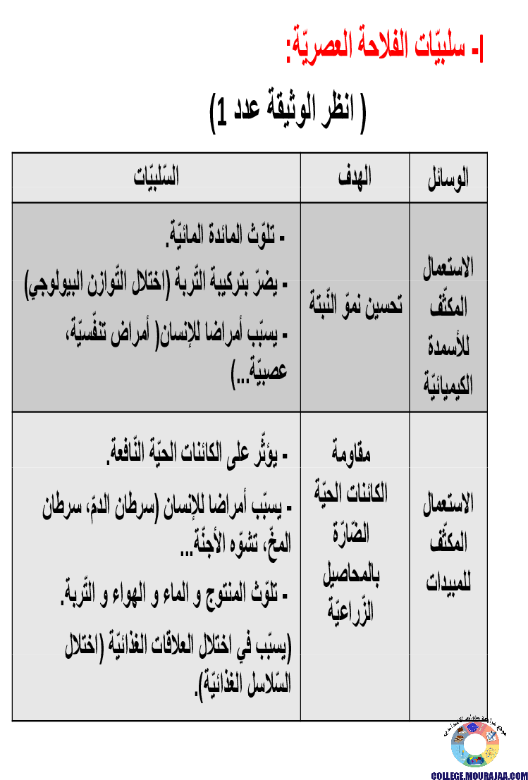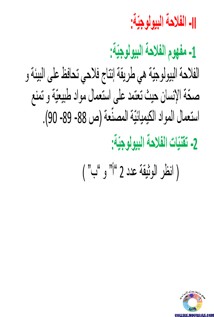 تلخيص درس الفلاحة البيولوجية في مادة علوم الحياة و الارض