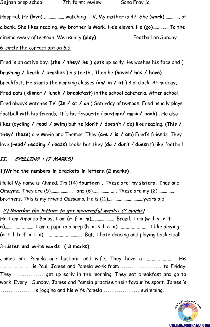 english lesson about Grammar activities review 1 for seventh grade students .